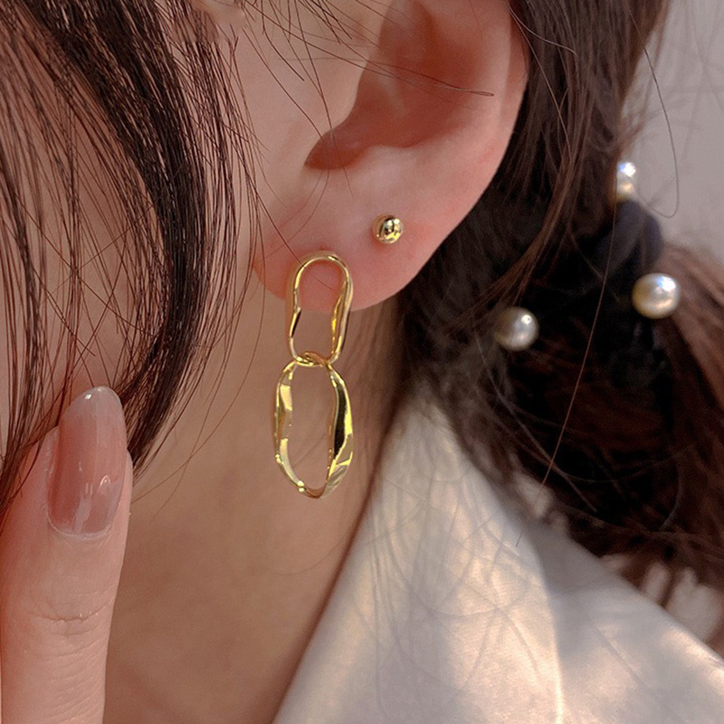 7# silver needle. golden c- shaped earrings