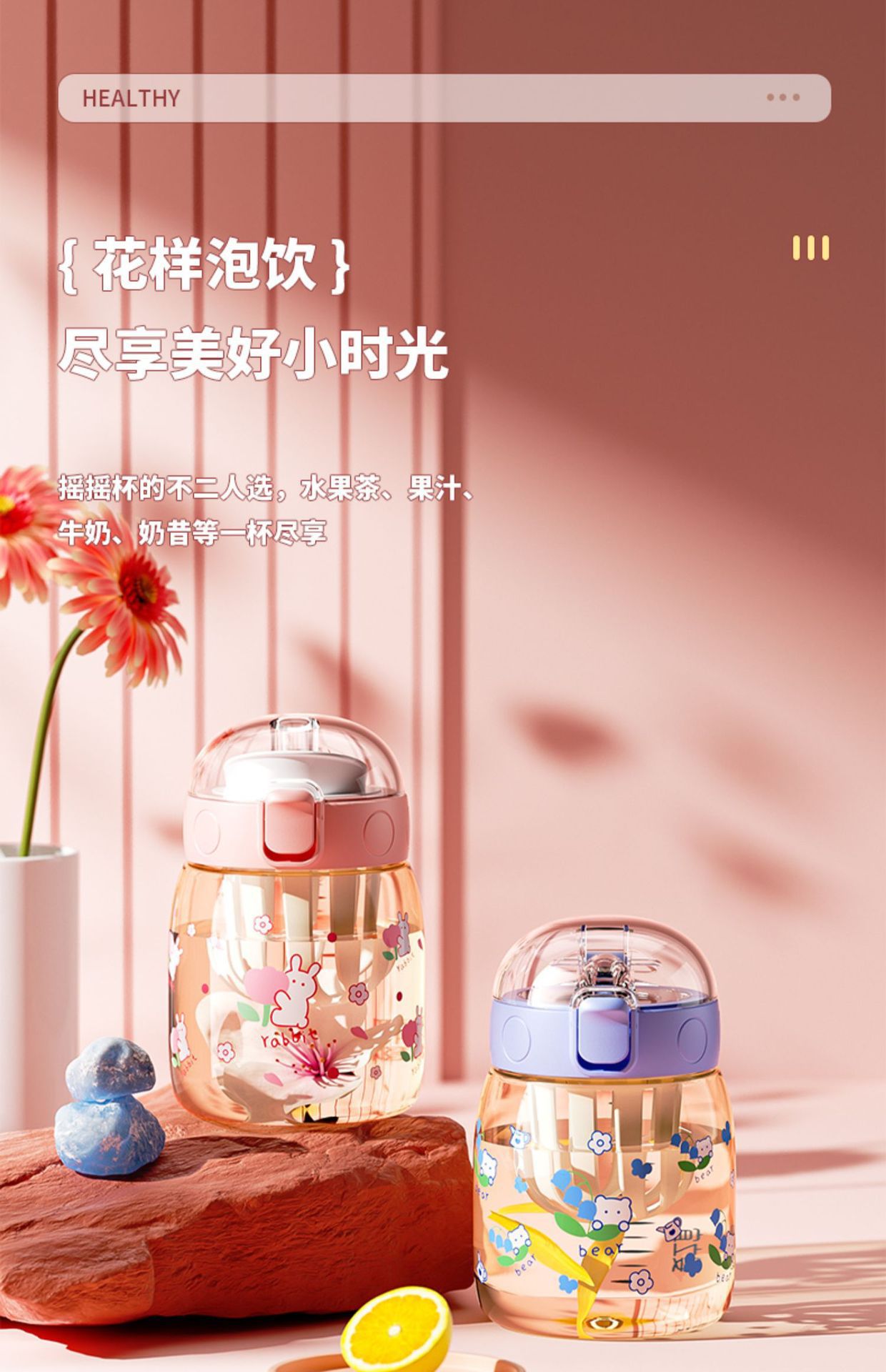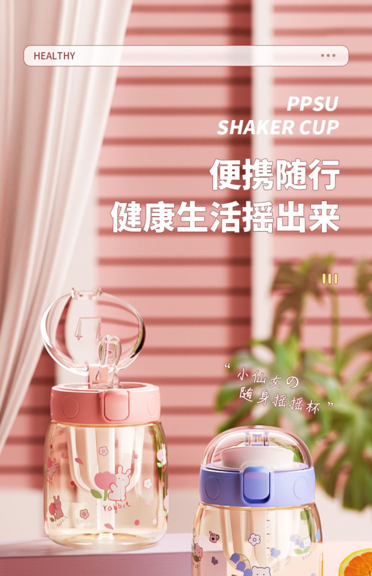 sports shake cup female summer ppsu student straw direct drink big belly kettle portable kid water cup handy cup