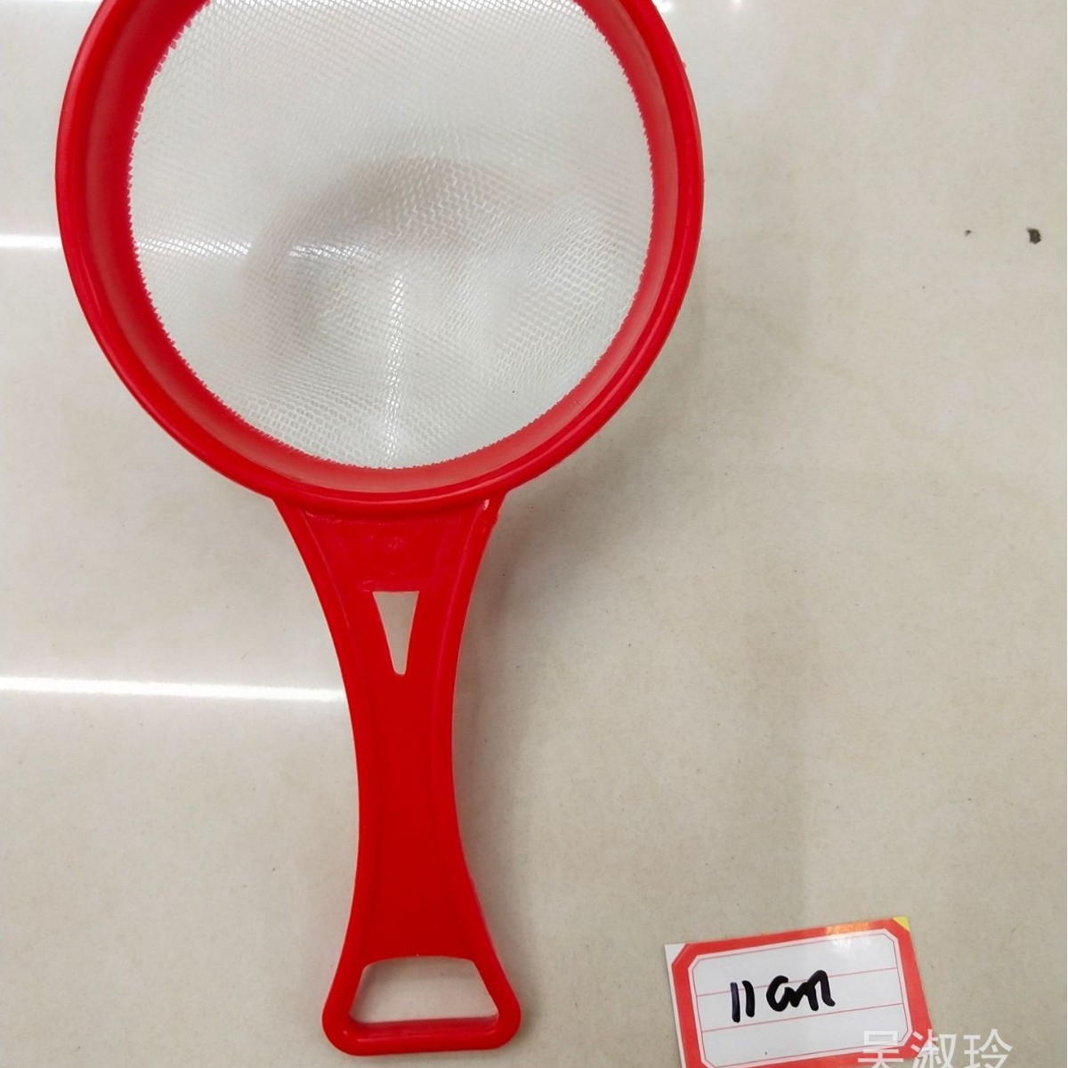 | product name 11cm plastic net strainer | weight 18.8g a 11 kg | color red green mixed |