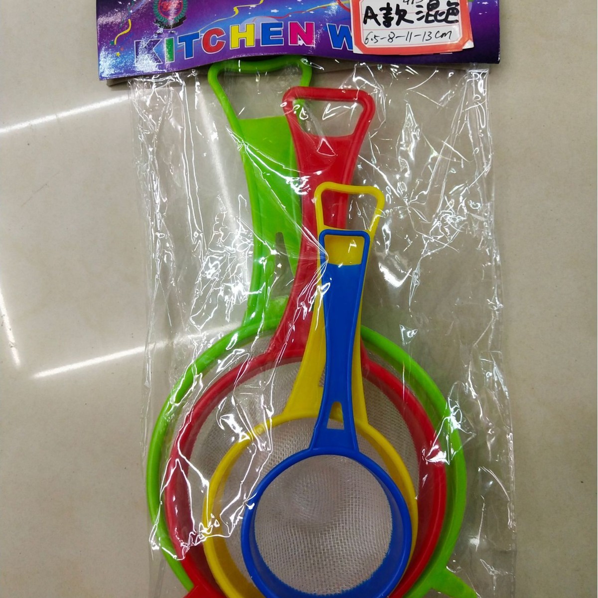 | product name 8cm plastic net strainer | weight 8.9g, 10 kg per piece | color red green mixed |