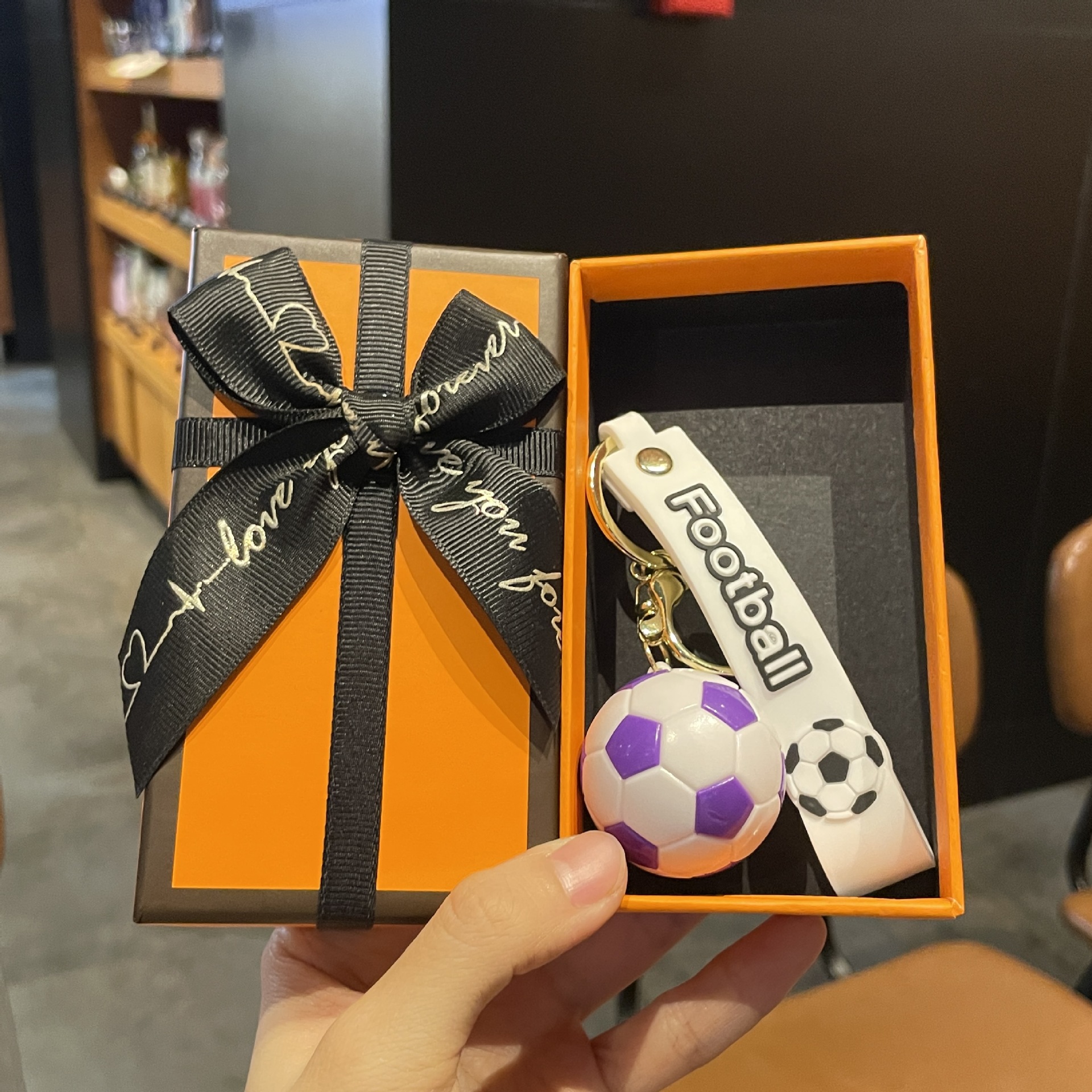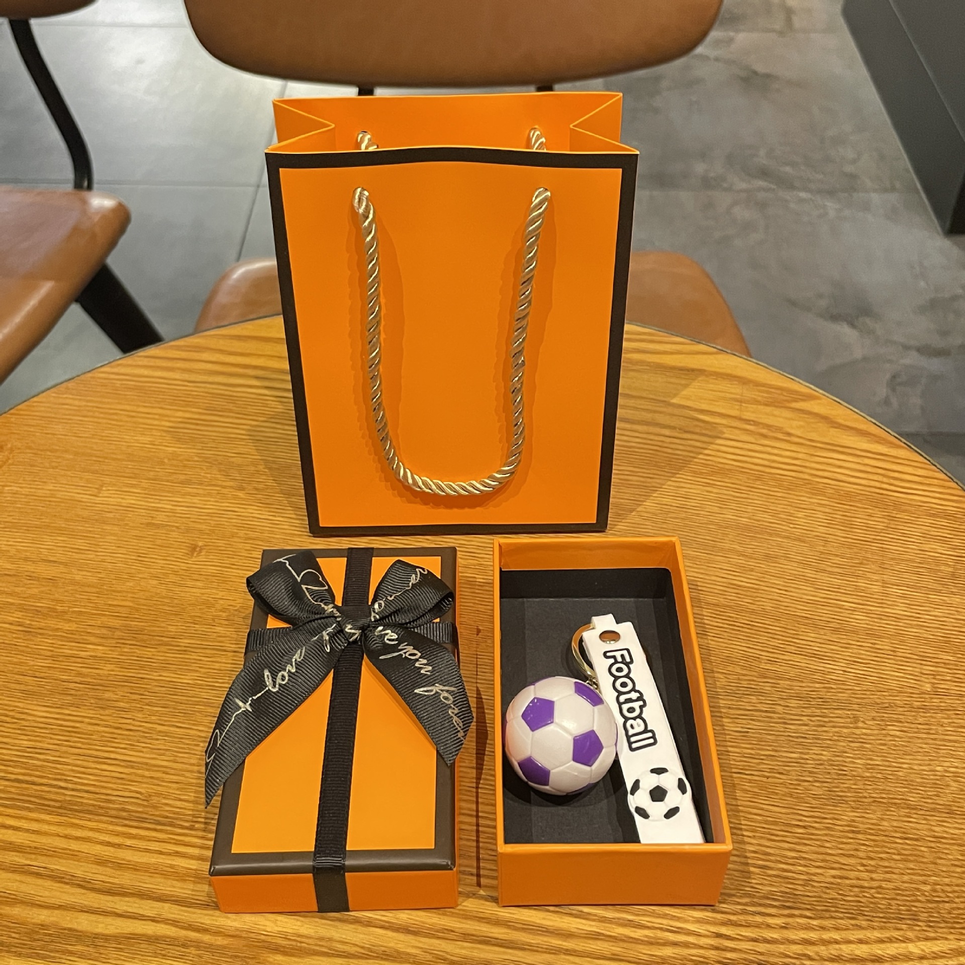 simulation football pendant-purple + orange gift box + gift bag