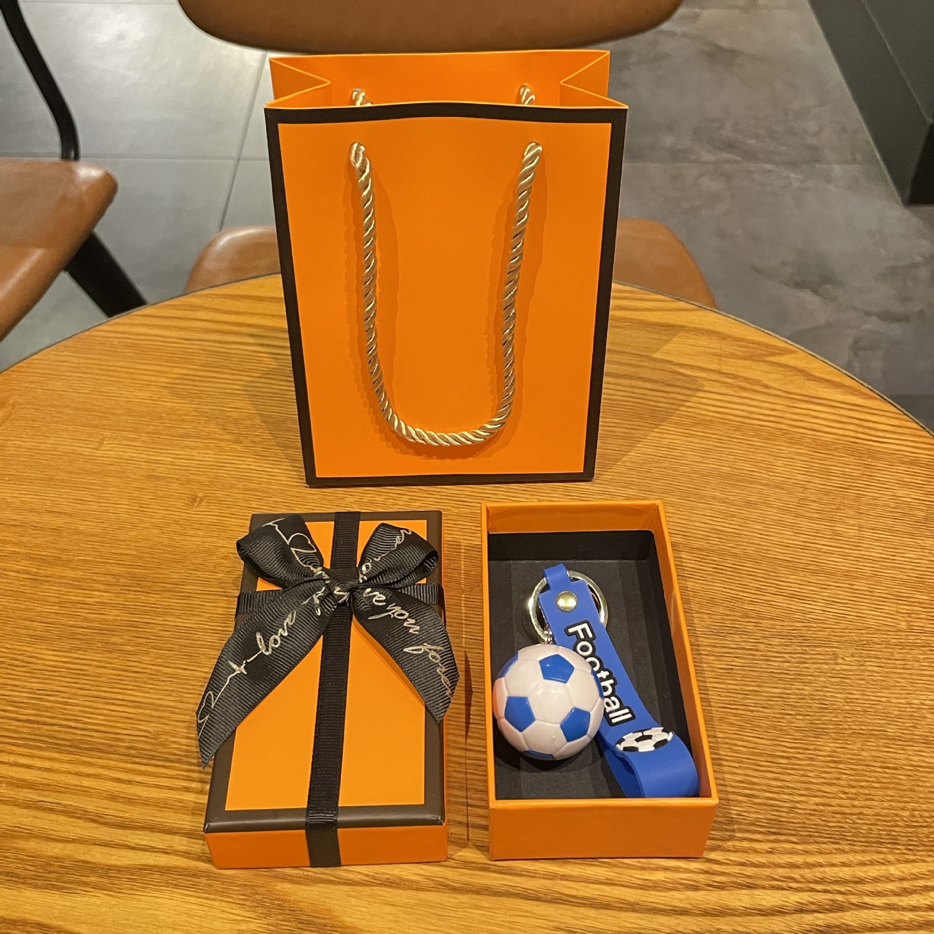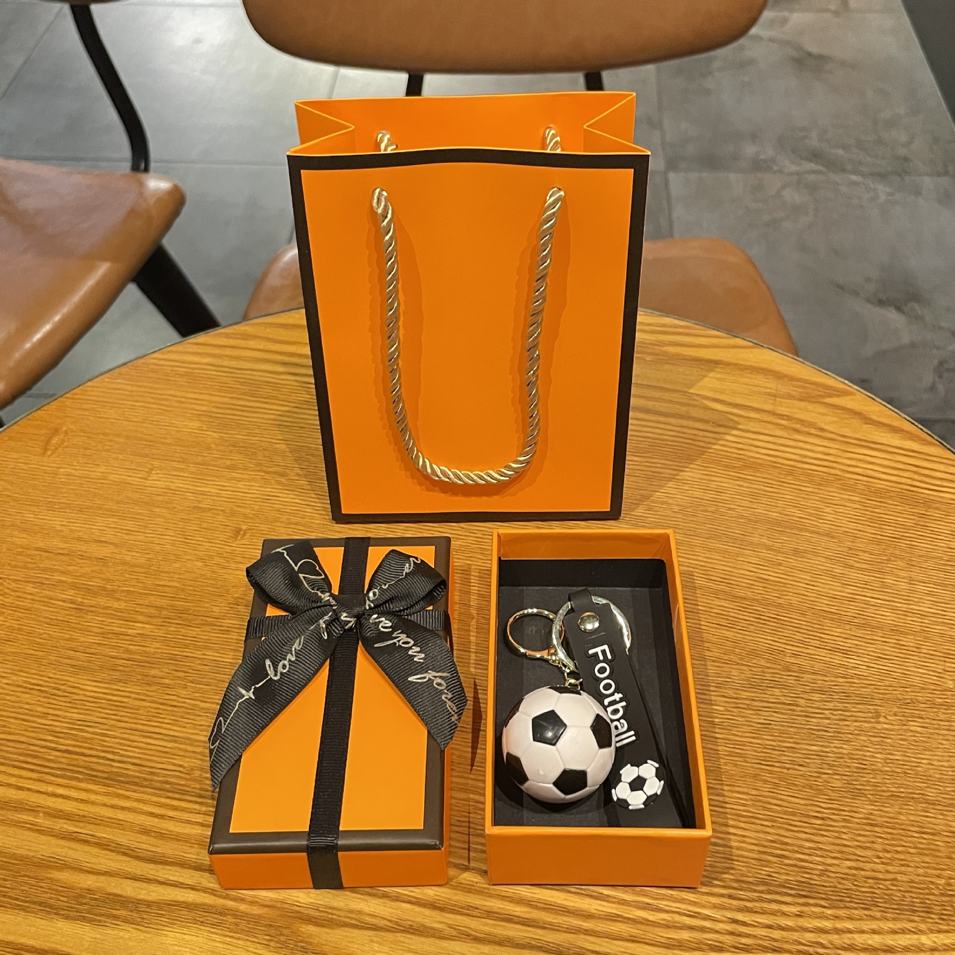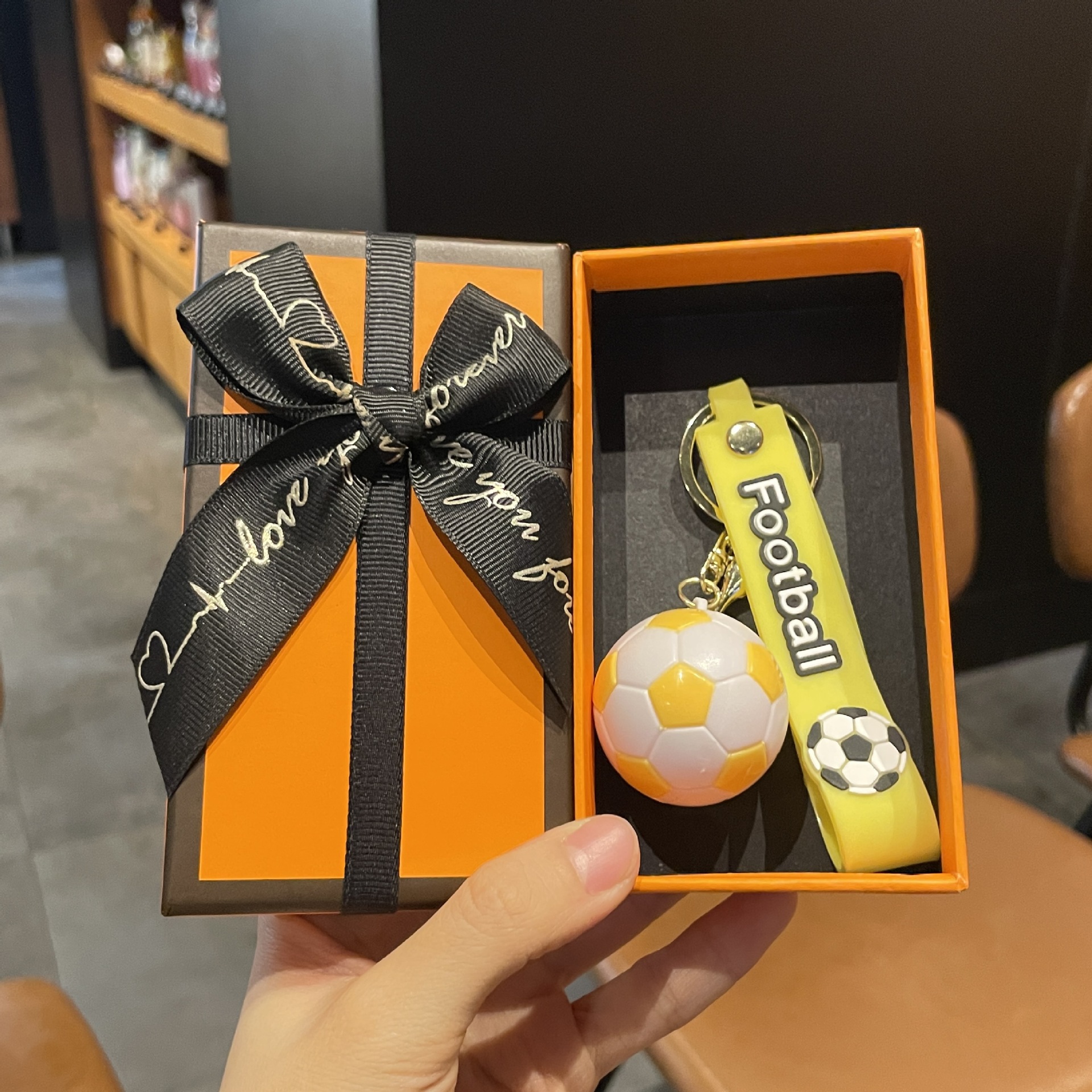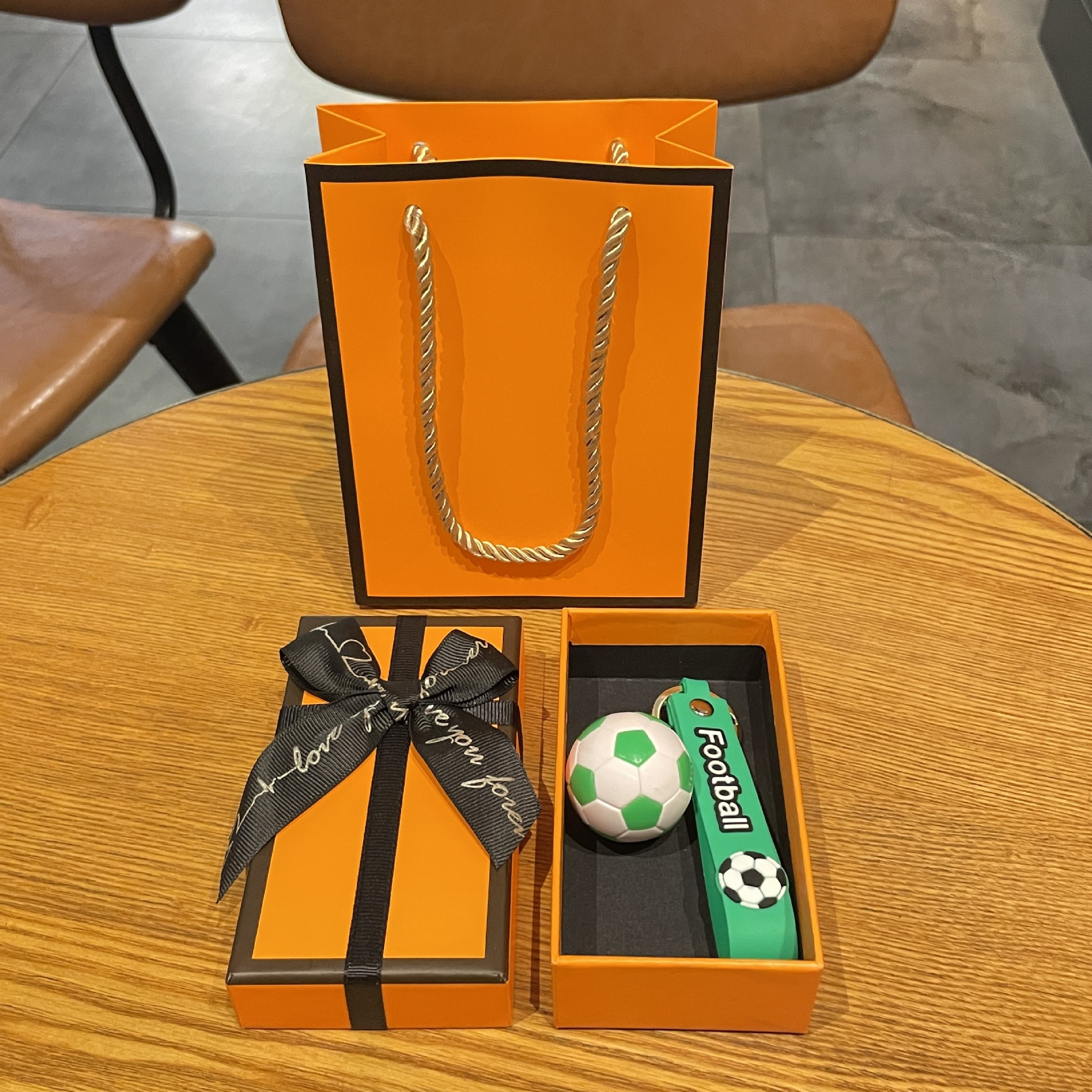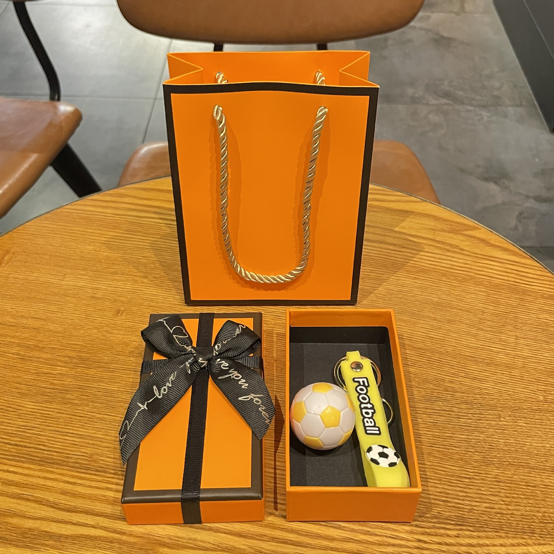 simulation football pendant-yellow + orange gift box + gift bag