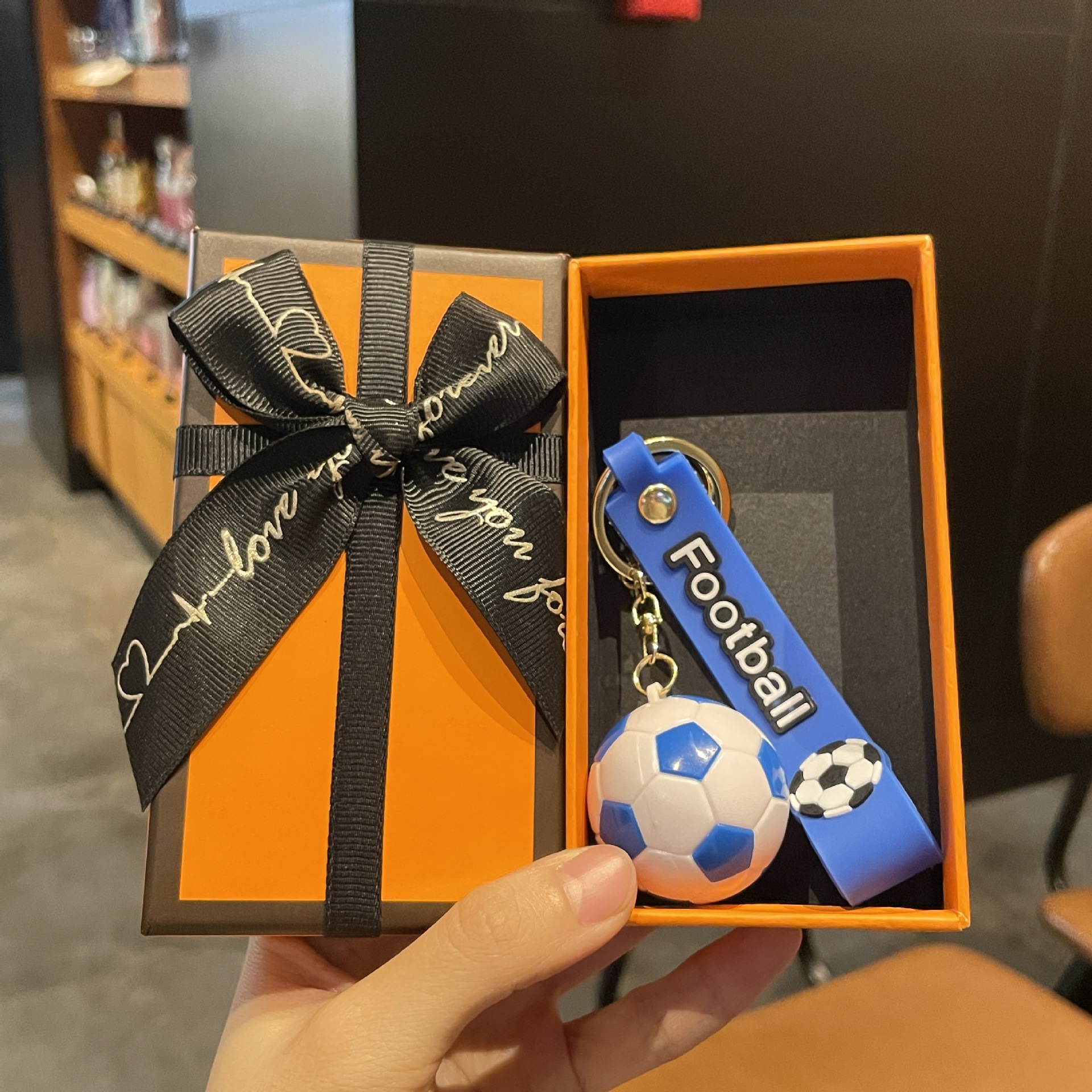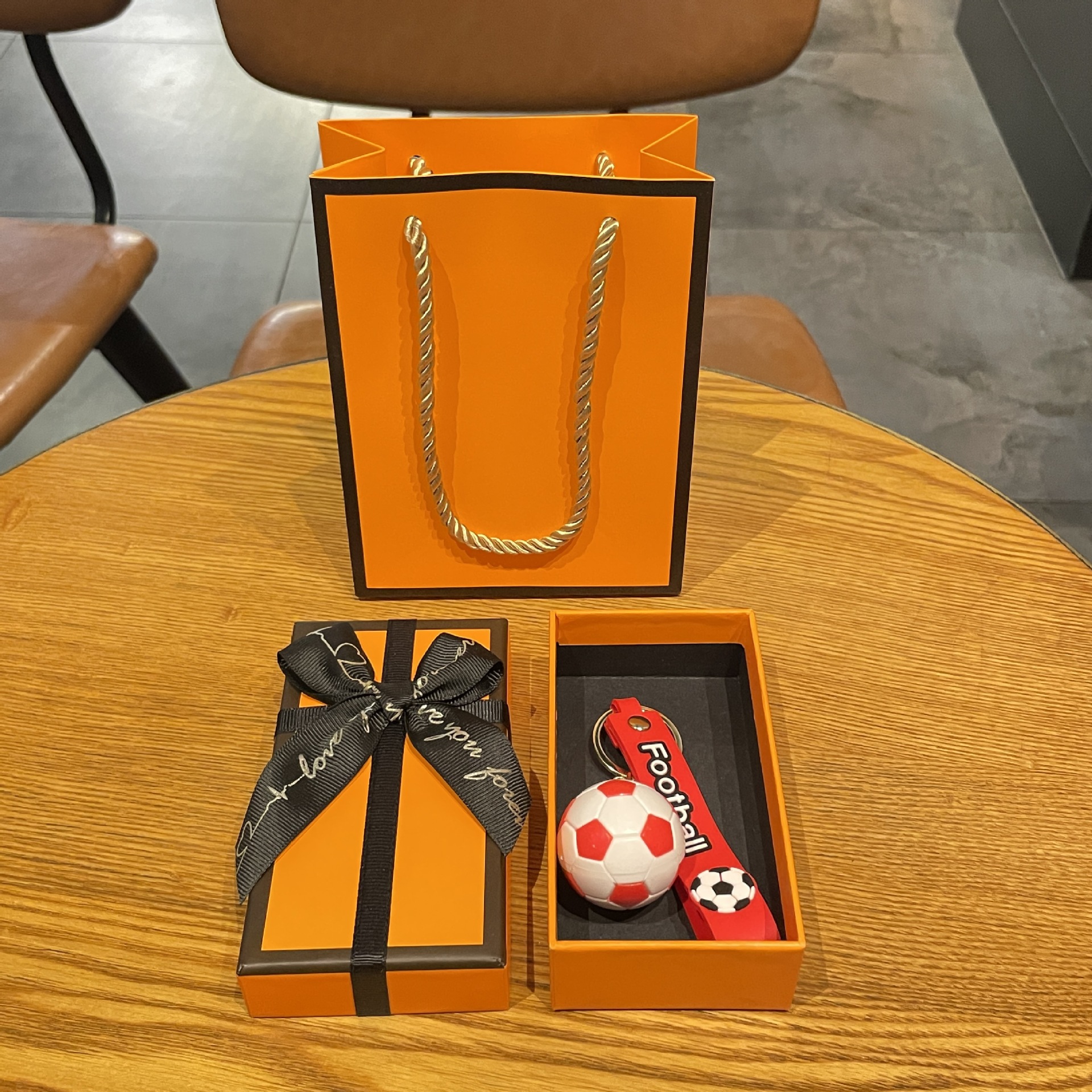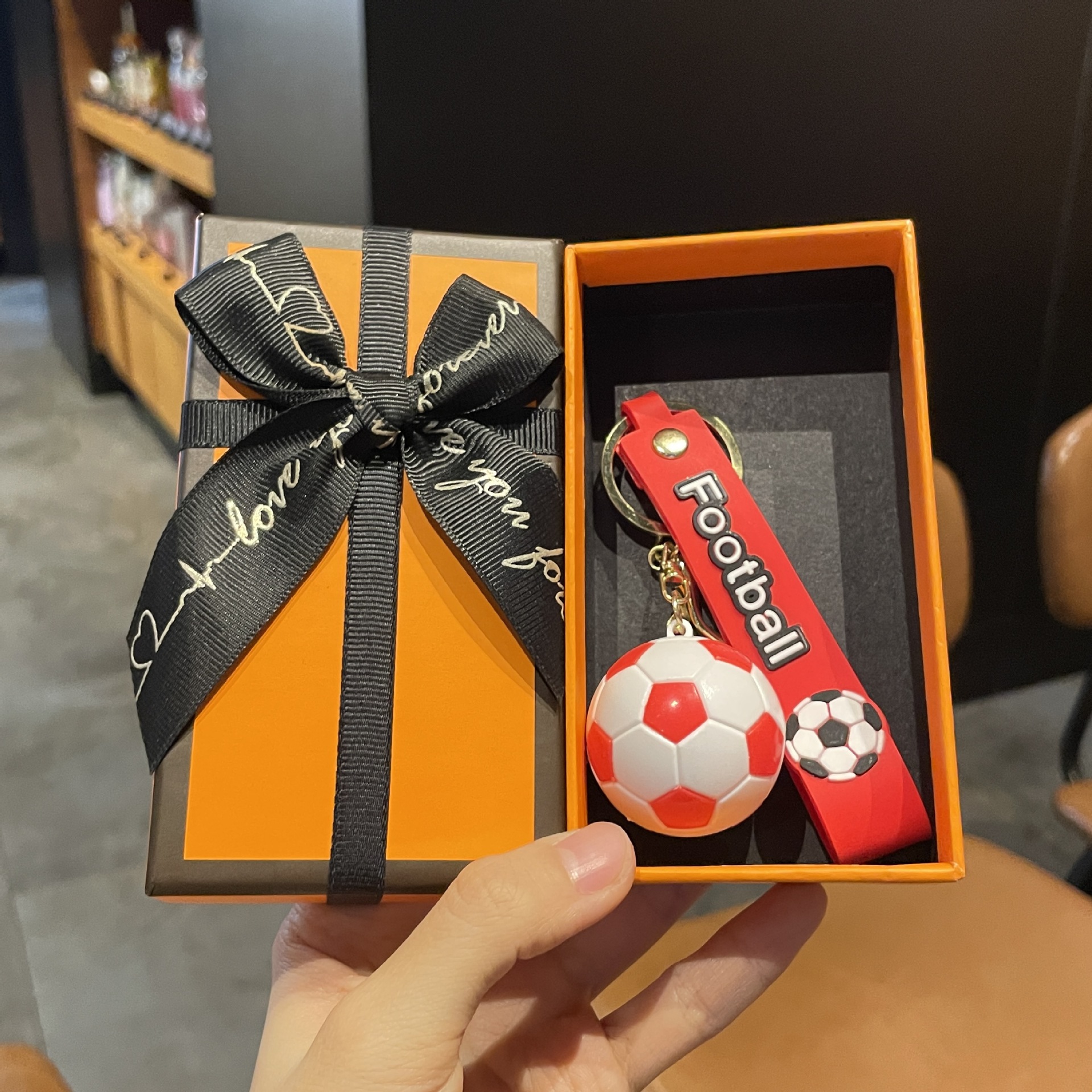 simulation football pendant-red + orange gift box + gift bag