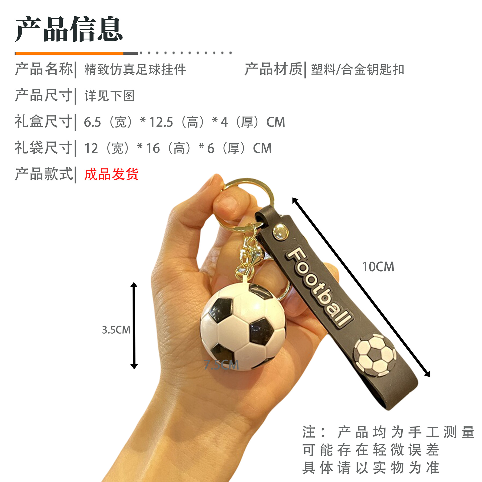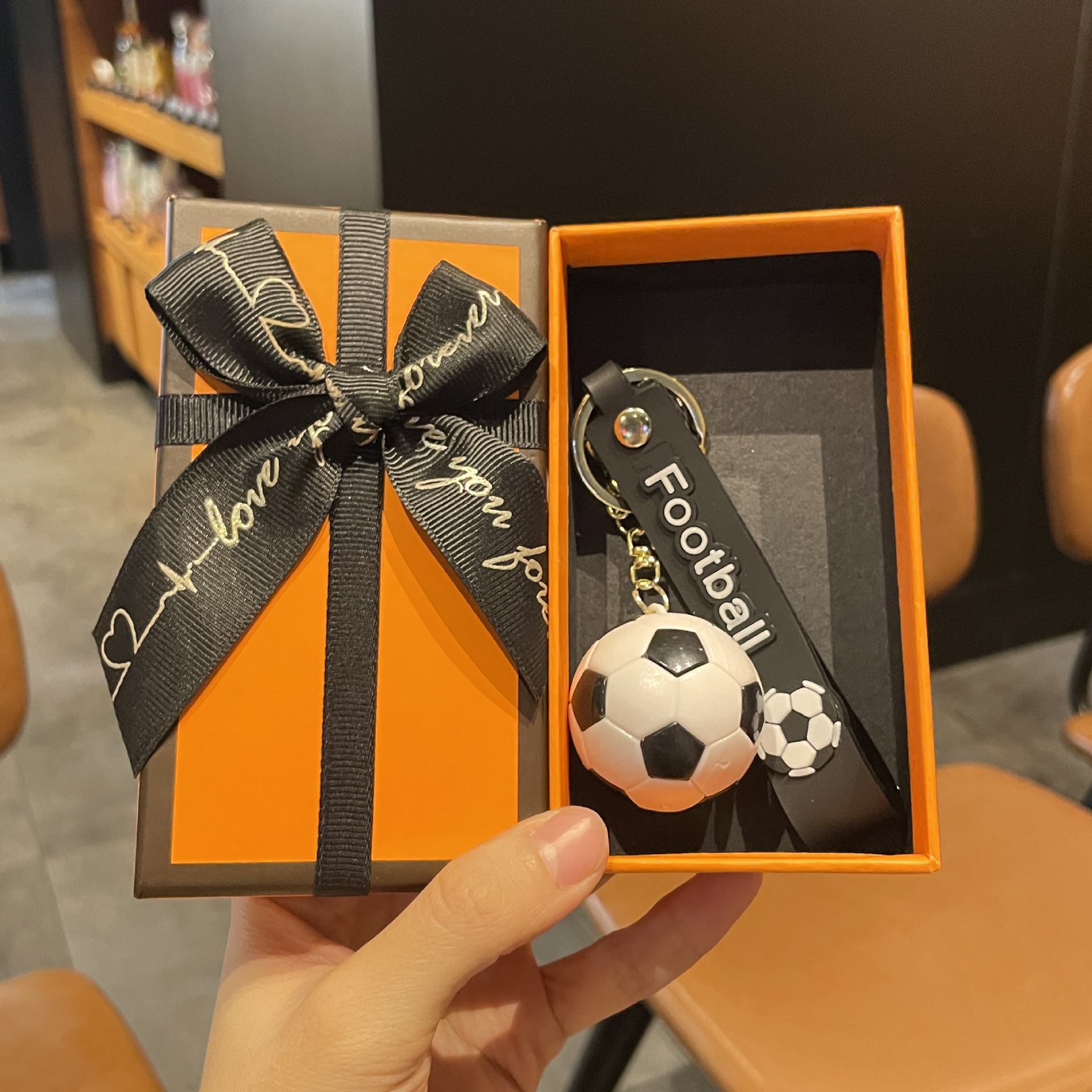 simulation football pendant-black and white + orange gift box + gift bag