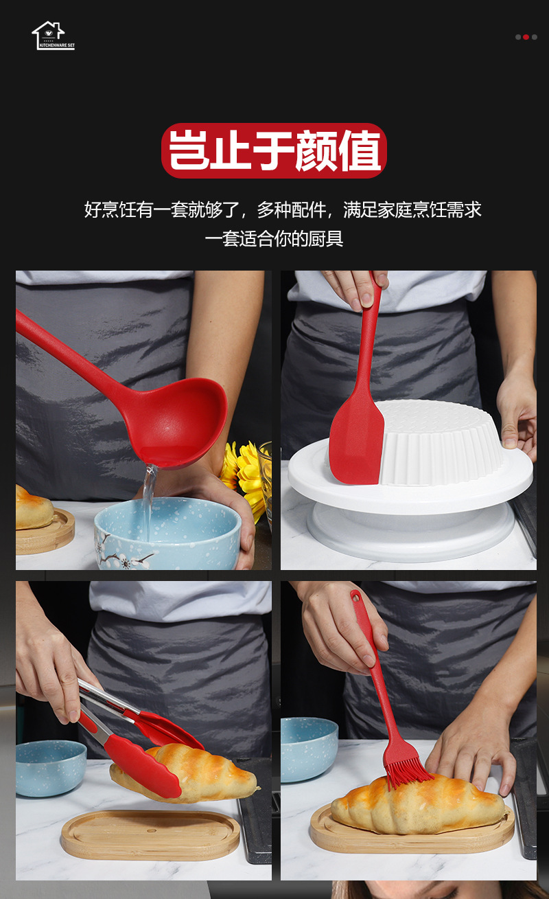 10-piece silicone kitchenware (color box packaging)-red