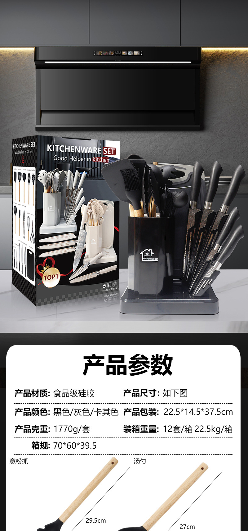 kitchenware hammer cutter 19-piece set-black