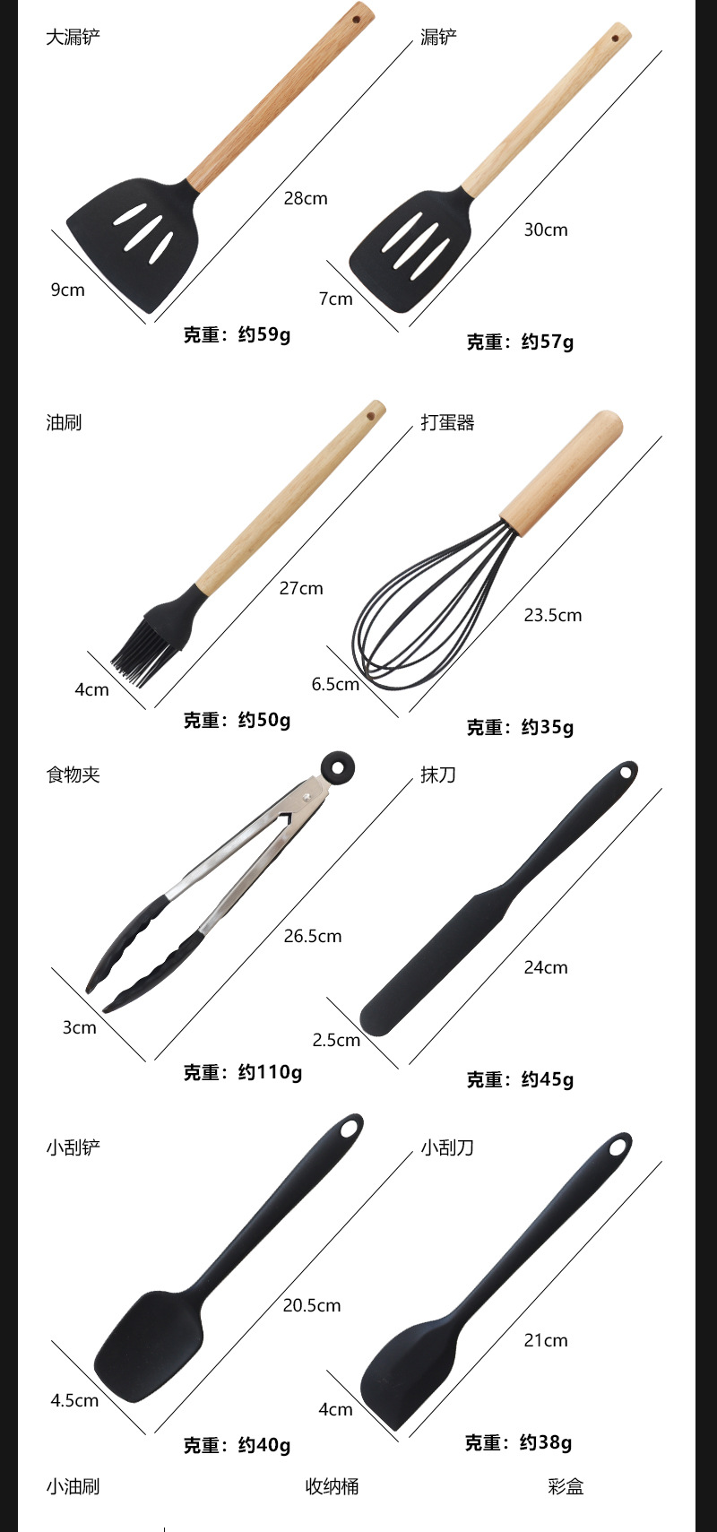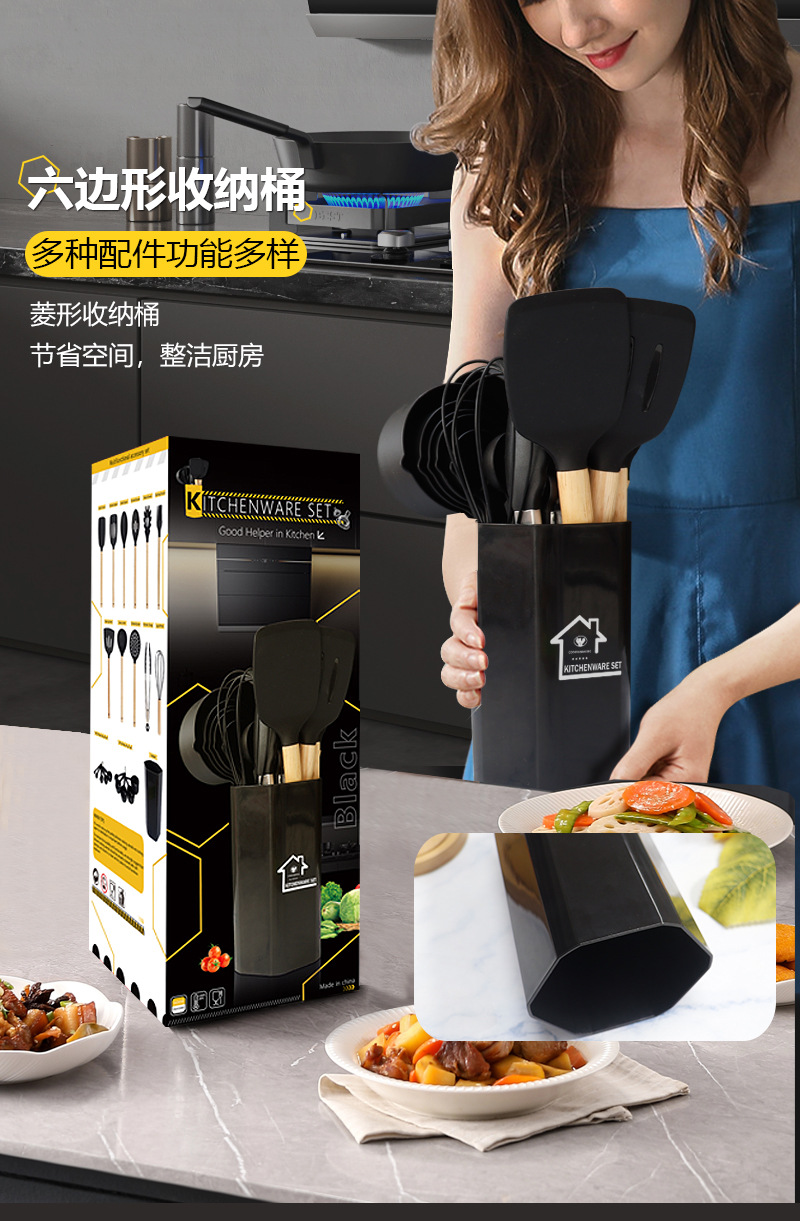 nordic kitchenware 12-piece set (hexagonal storage bucket)-black