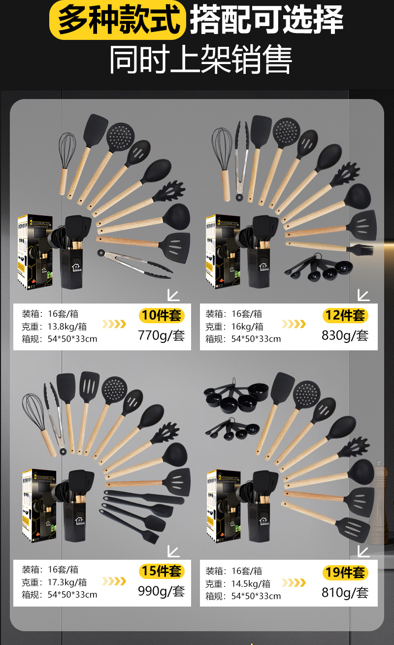 nordic kitchenware 15-piece set (hexagonal storage bucket)-black