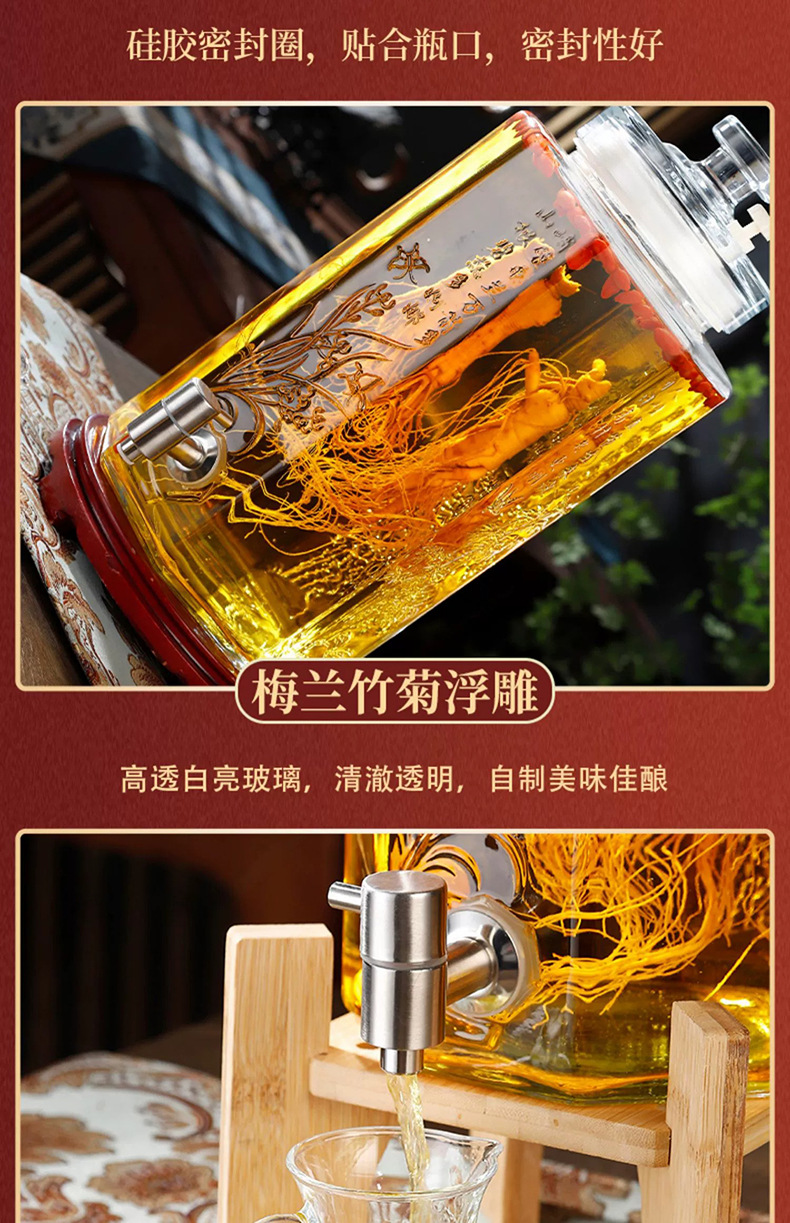 2.50kg + stainless steel faucet + short wooden base; transparent