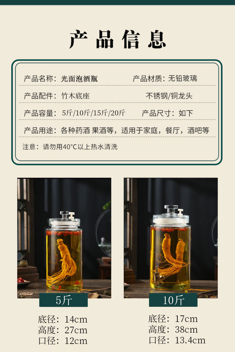 5.00kg + copper faucet + bamboo base; transparent