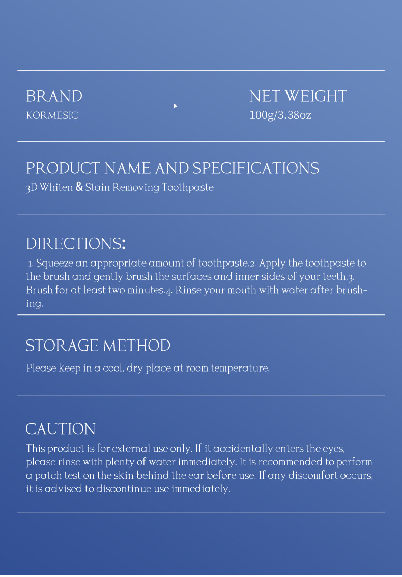 100g 3d tooth cleaning toothpaste [only for foreign trade export sales, domestic sales are prohibited, purchase is the default disclaimer and responsibility