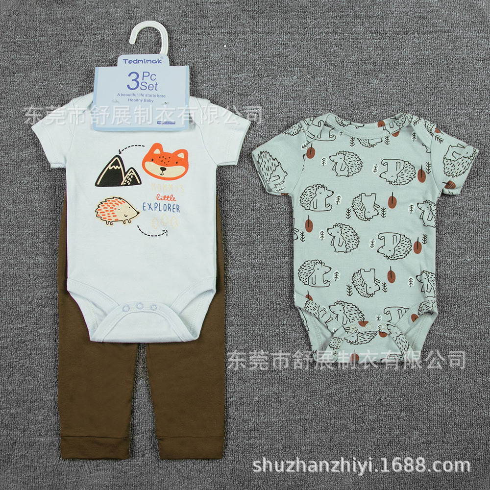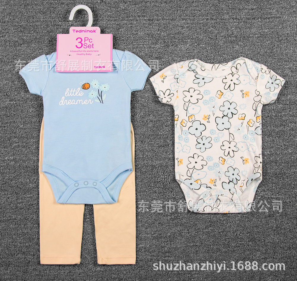 2025 aliexpress hot sale foreign trade children's wear wholesale european and american short sleeve onesie anti mosquito pants infant clothing set