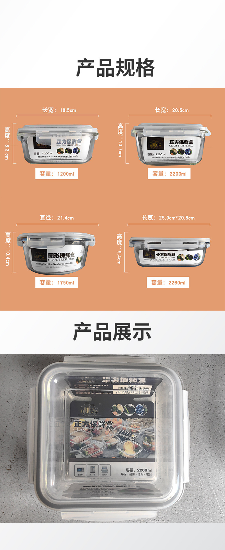 rectangular 2260ml (8 pcs/box) unit price per piece