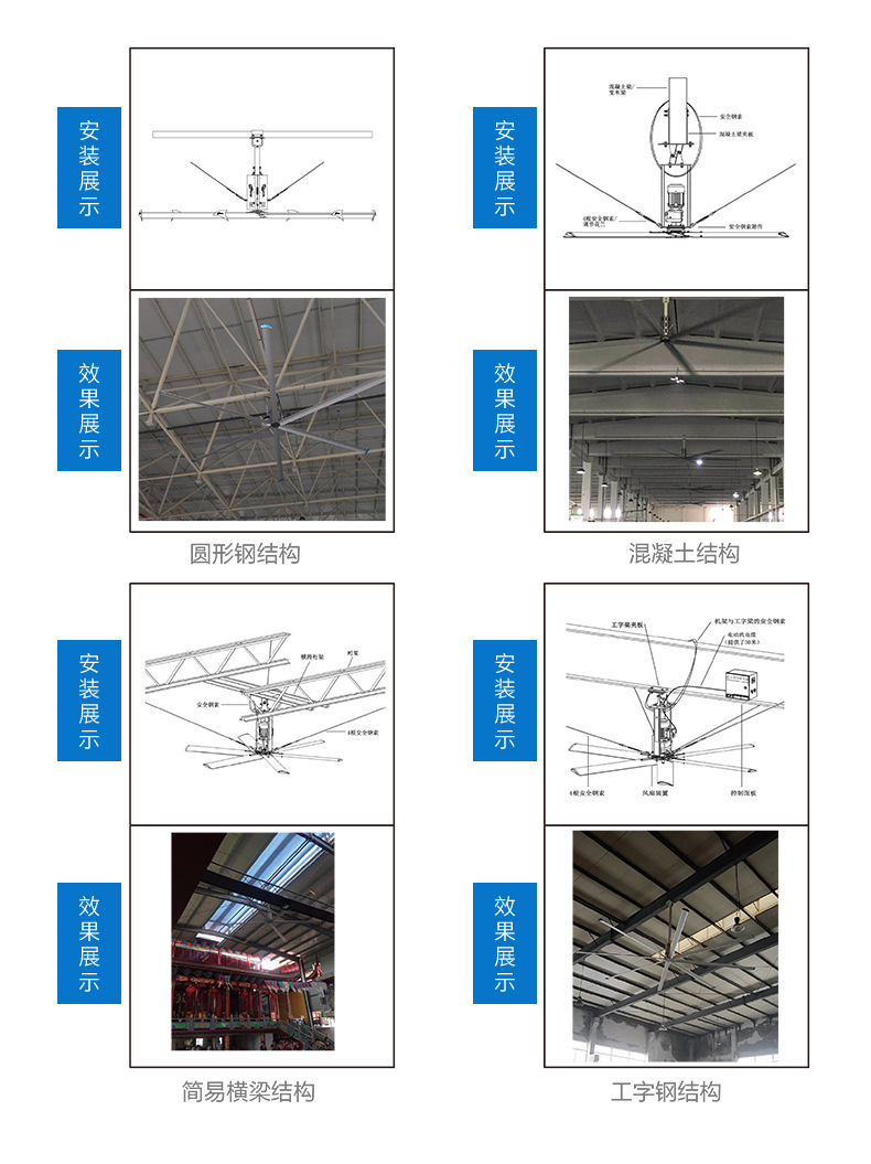 diameter 7.3 m industrial ceiling fan suitable for installation height 8-9 m