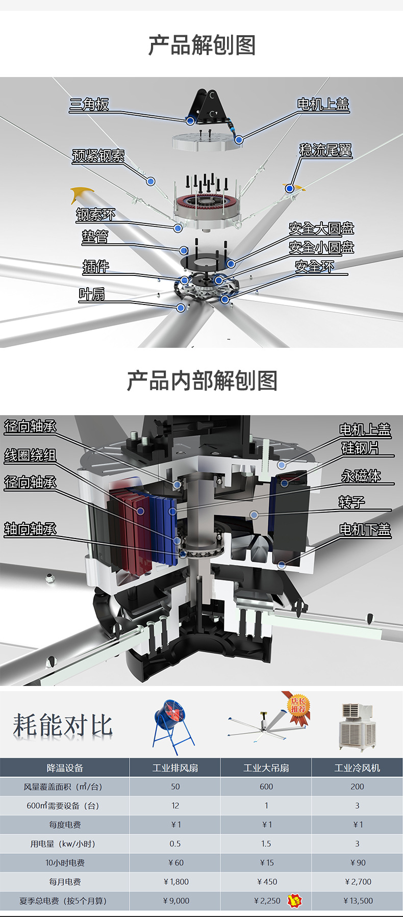 diameter 5.0 m industrial ceiling fan suitable for installation height 5-6 m