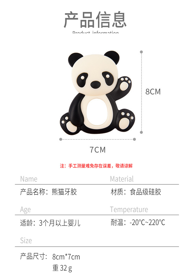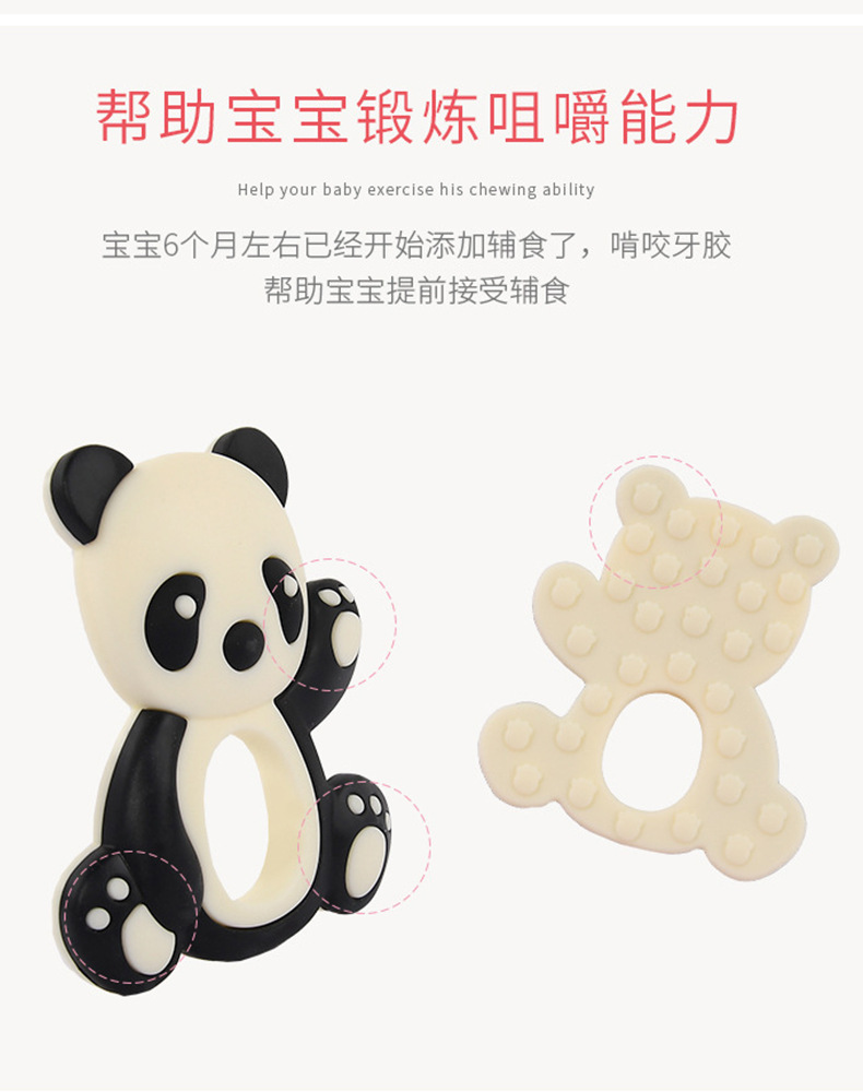 silicone teether baby food grade panda grinding machine factory spot 3 months baby teething toy munchkin soothing chews