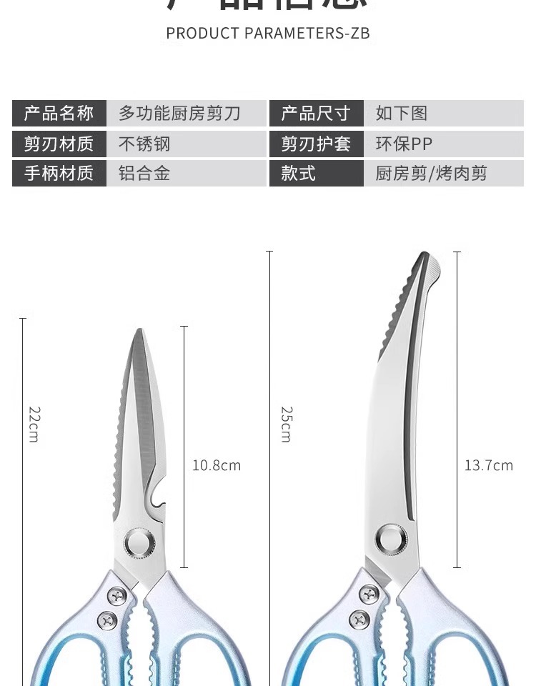 six-generation multi-functional blue kitchen scissors + scissors set [upgraded alloy steel]]