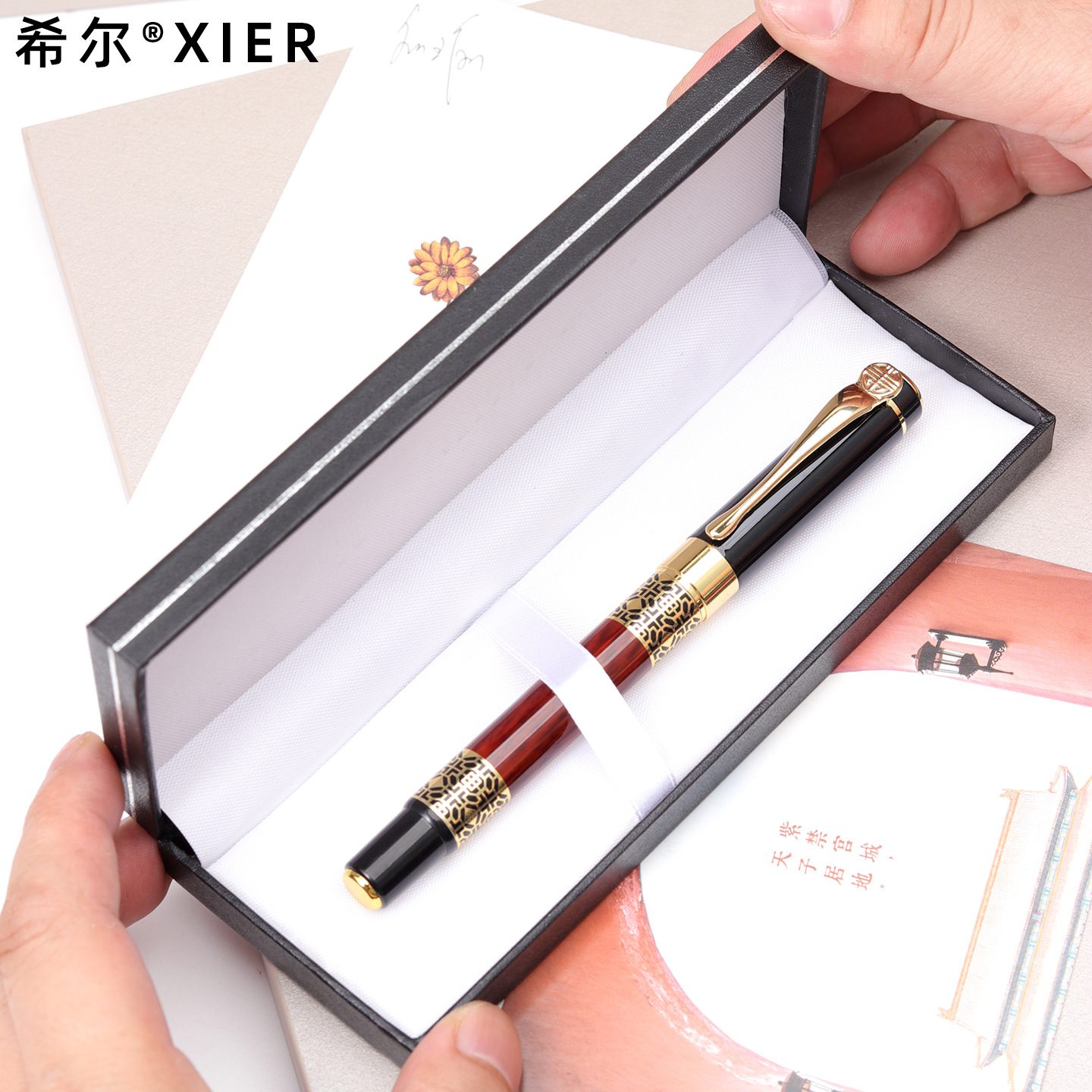 fp633 pen/gold sand gold pieces [silver string box set]]