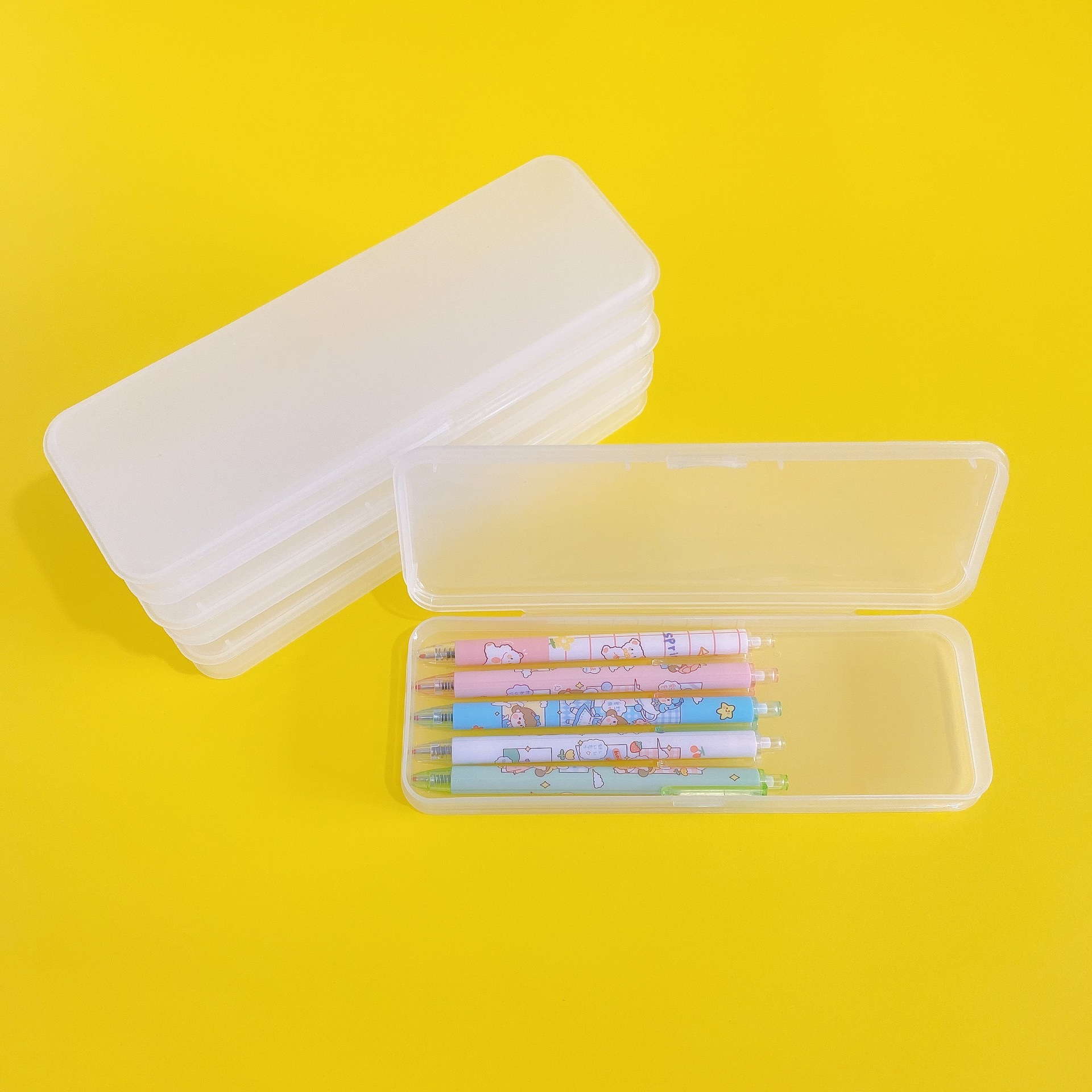 (long pencil can be placed) non-grid oval frosted platic box
