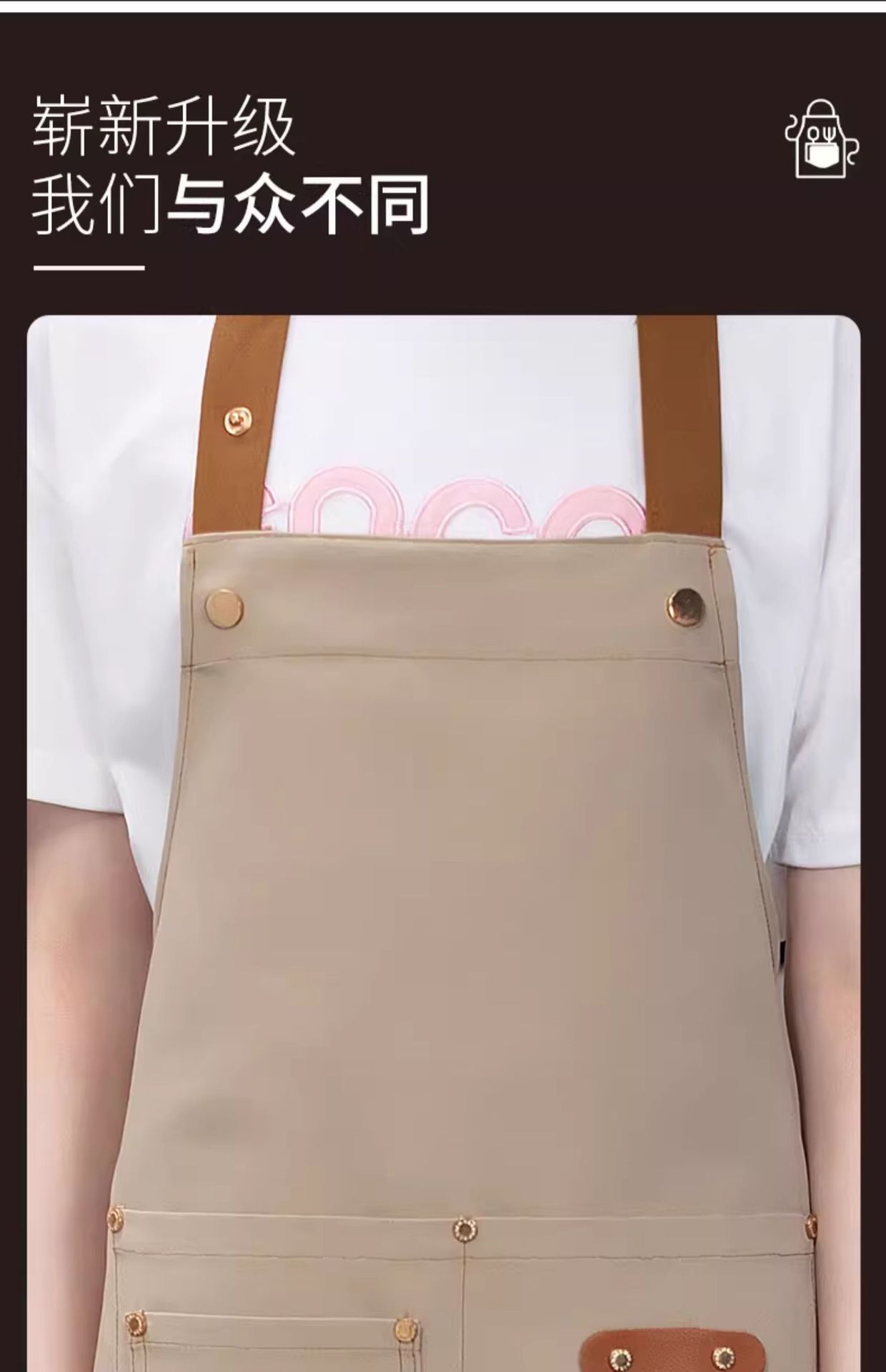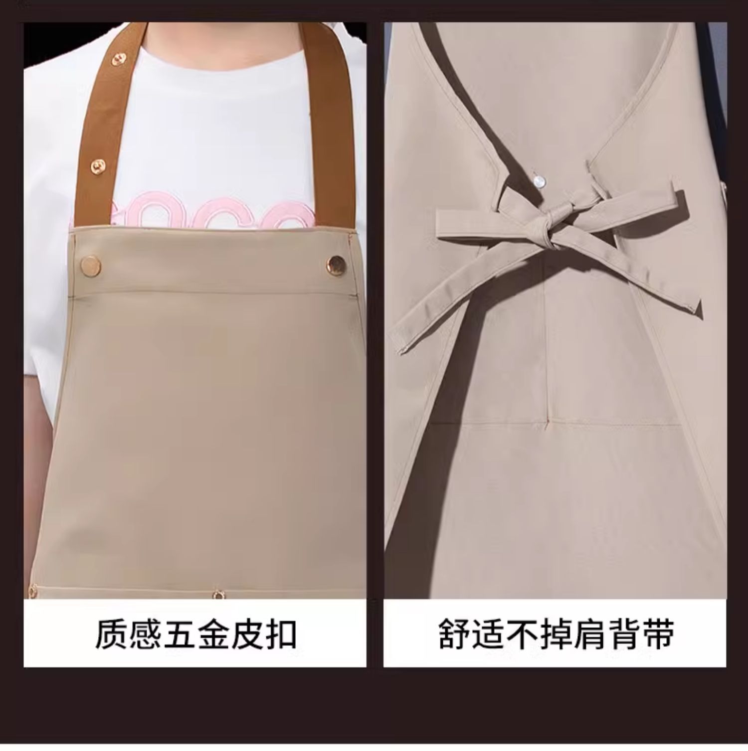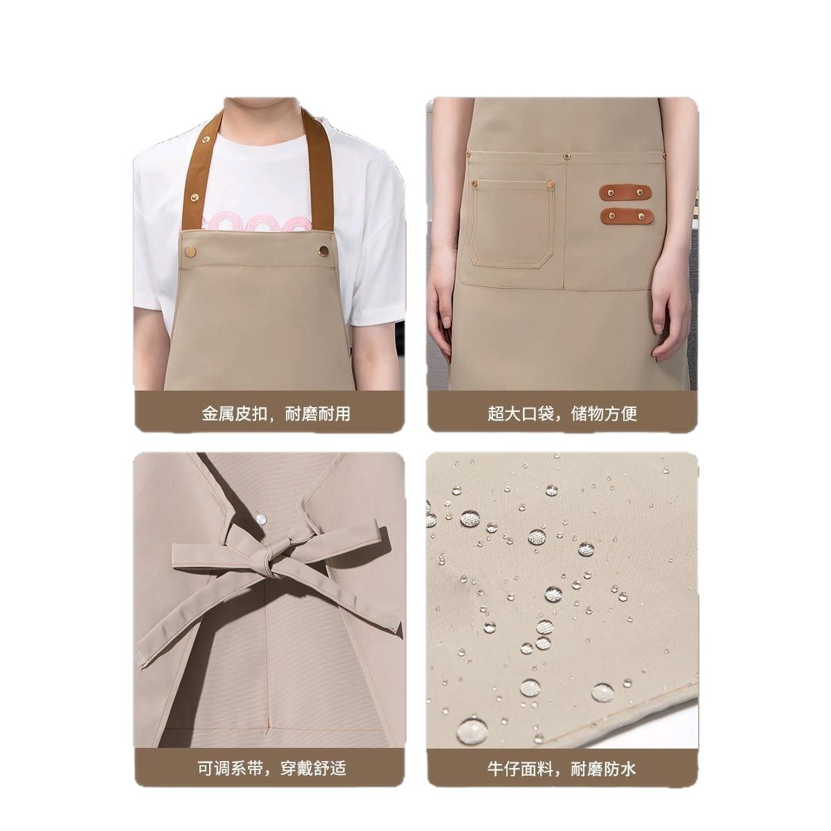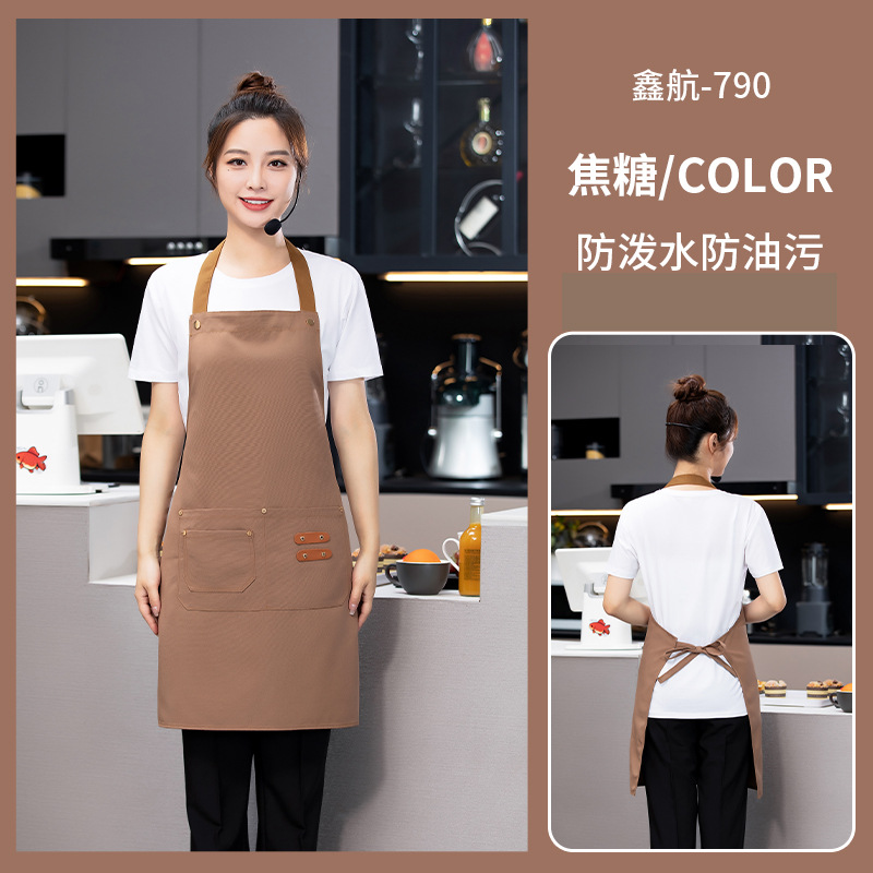 [adult brass buckle shoulder strap] xhhs-801 internet celebrity apron light coffee color
