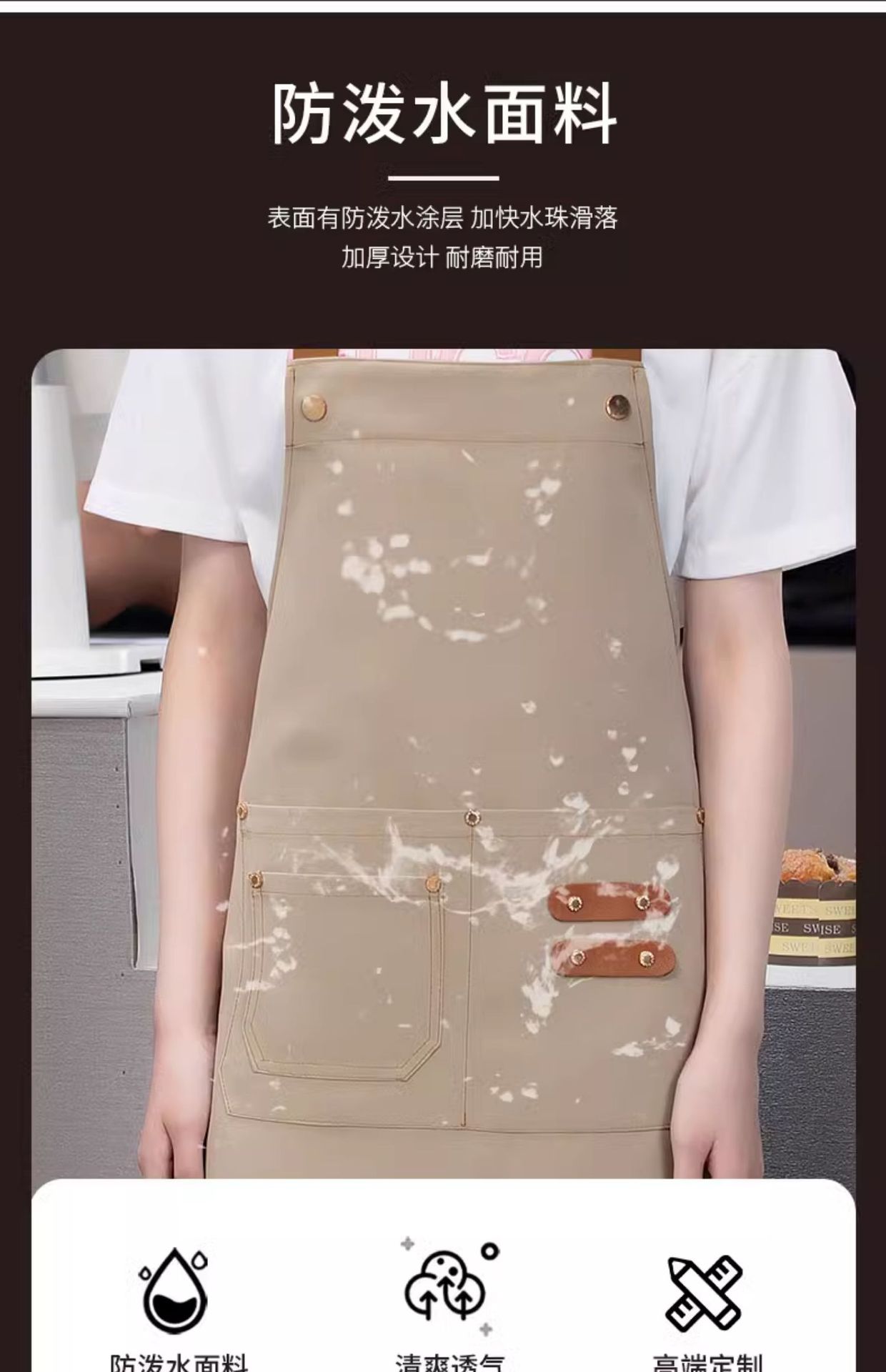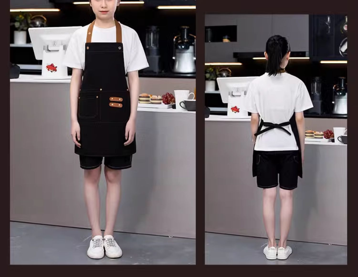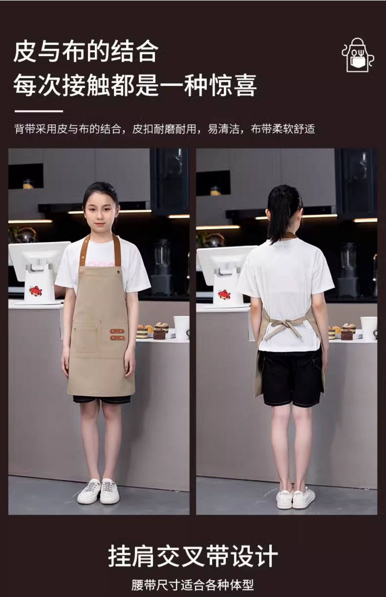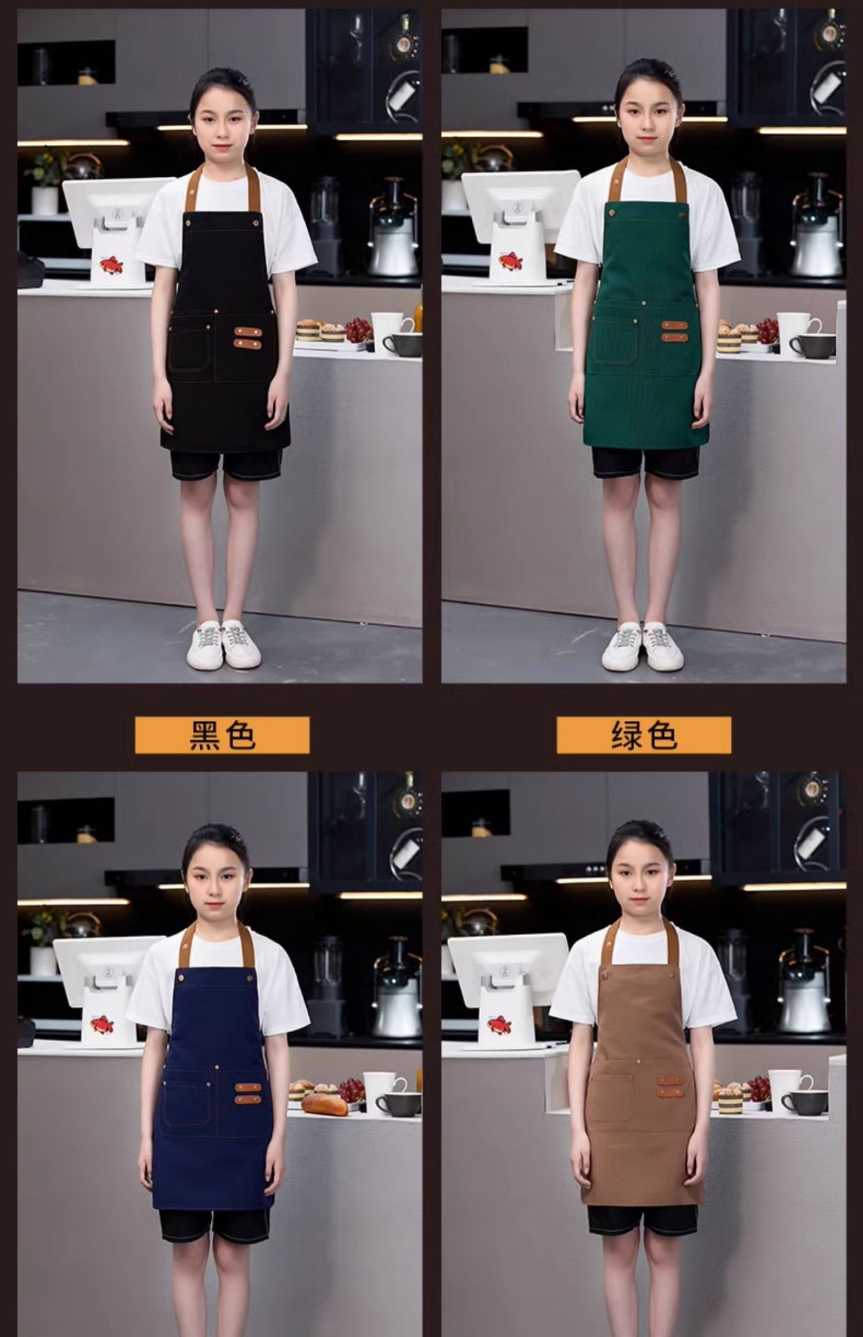 [adult brass buckle shoulder strap] xhhs-801 internet celebrity apron light coffee color