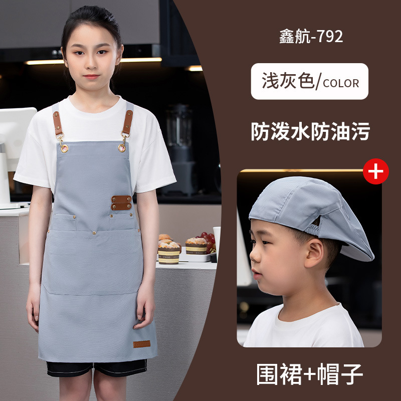[set] xhhs-792 children's net red apron light gray + children's elastic cap-light gray