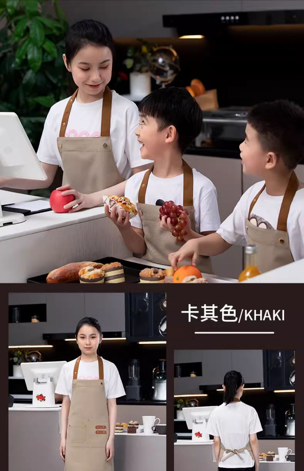 [suit] xhhs-792 children's net red apron khaki color + children's elastic cap-khaki