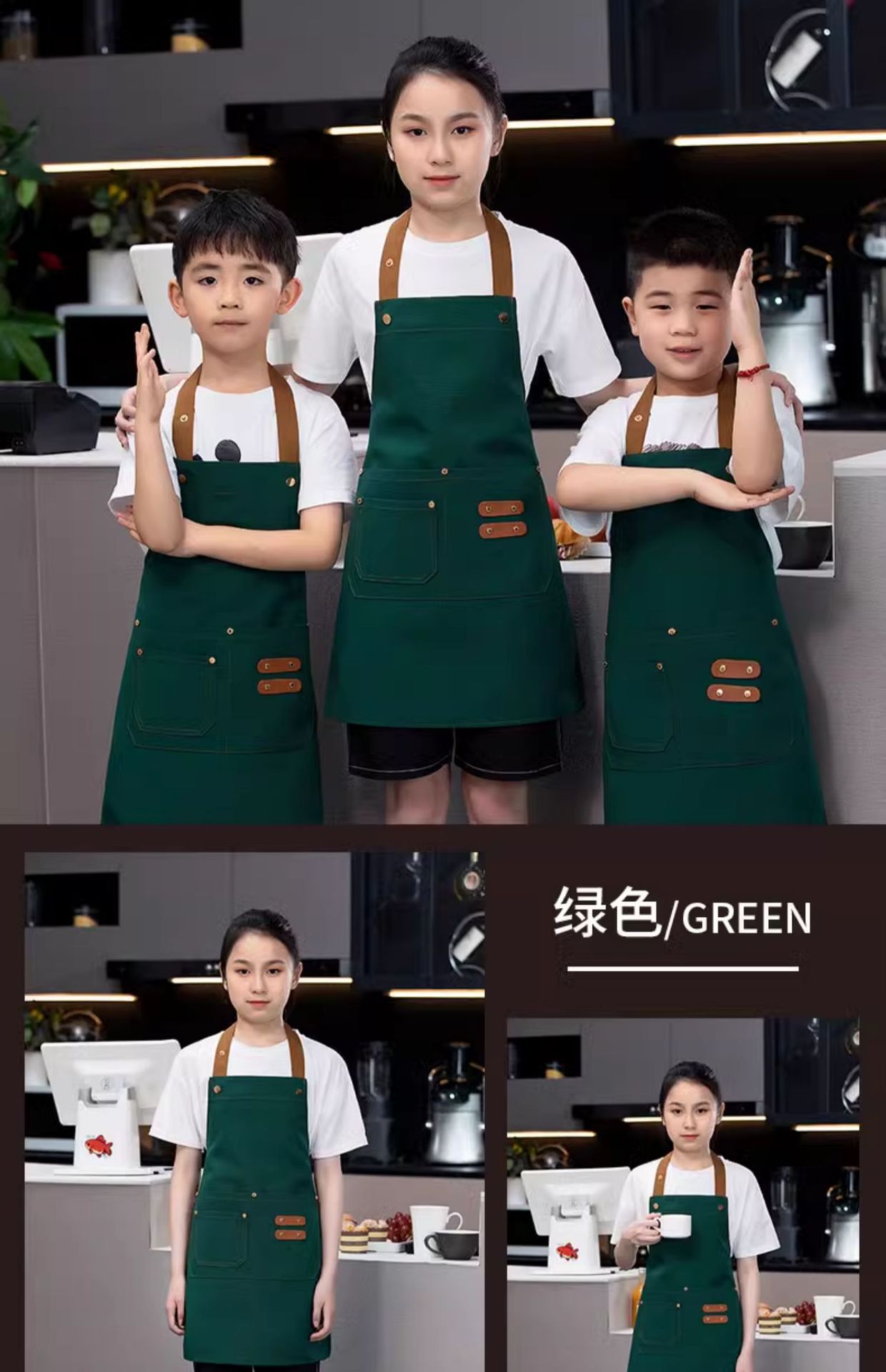 [adult halter style] xhhs-790 double leather brand apron green