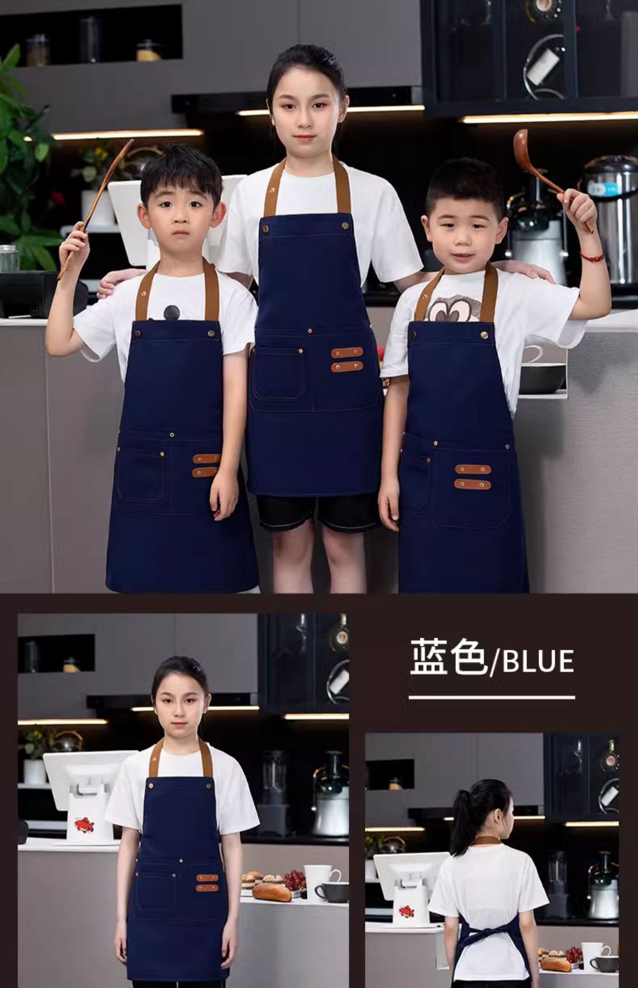 [children's brass buckle shoulder strap] xhhs-792 children's net red apron blue