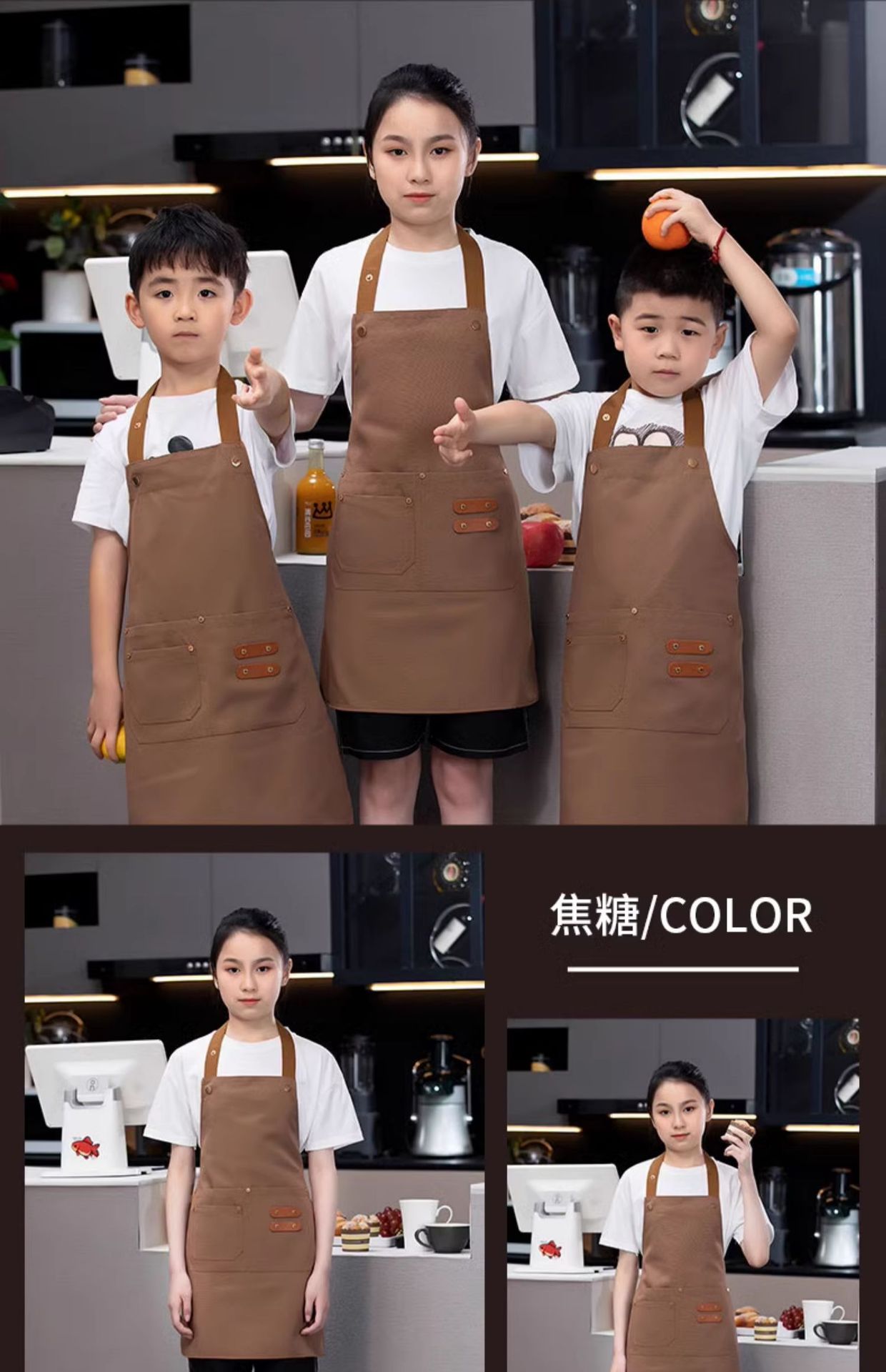 [children's brass buckle shoulder strap] xhhs-792 children's net red apron light coffee color