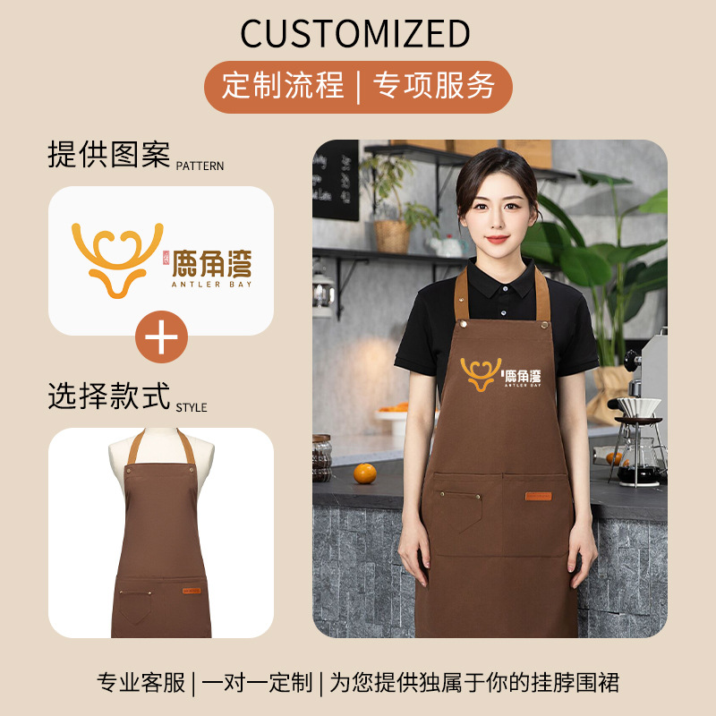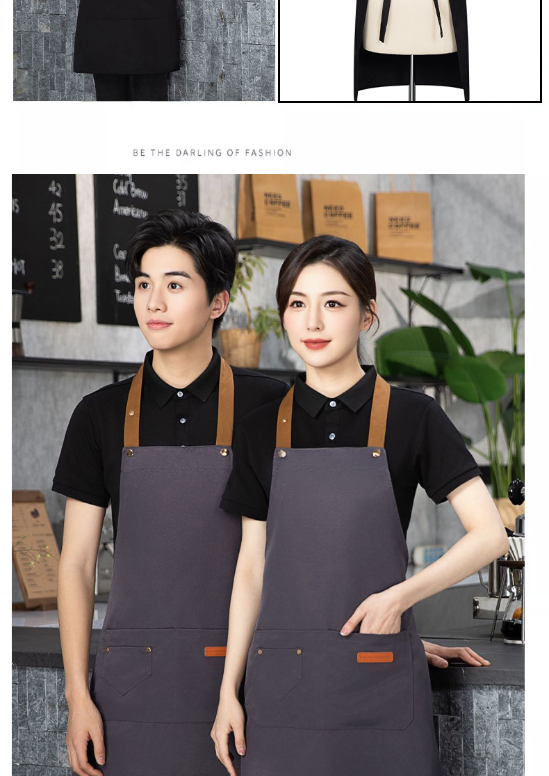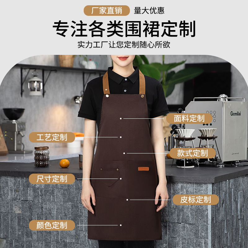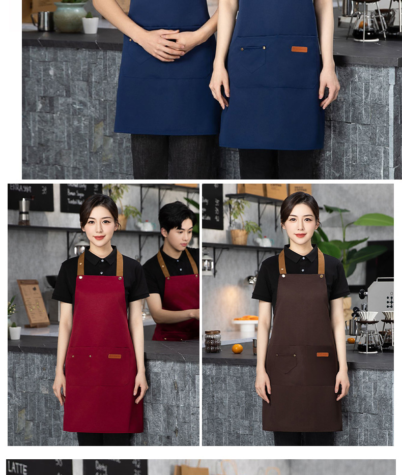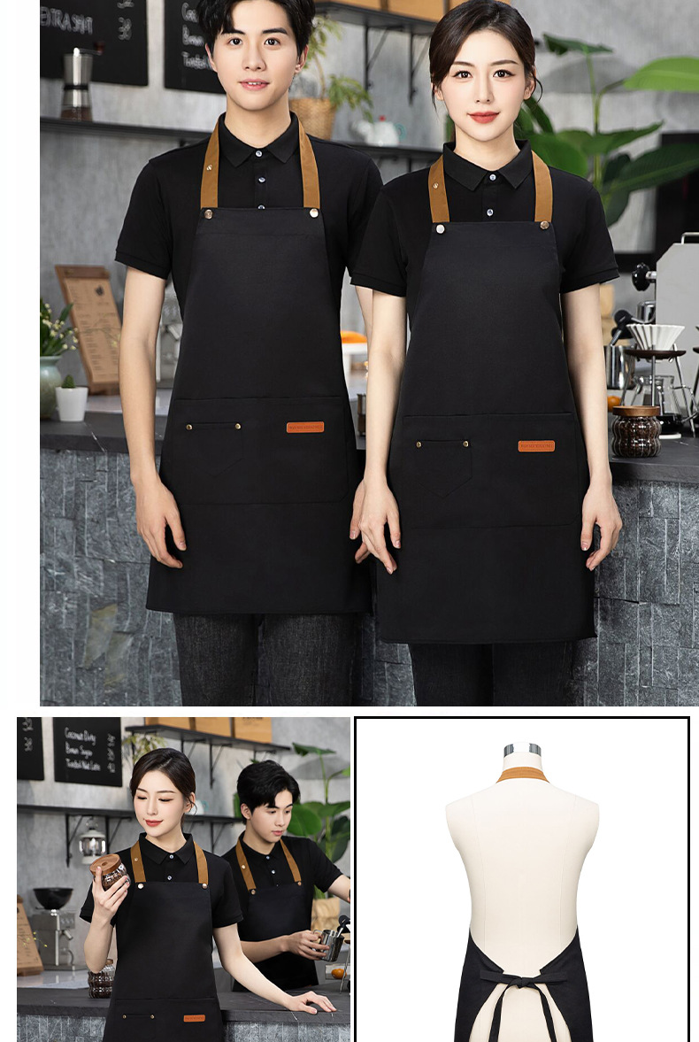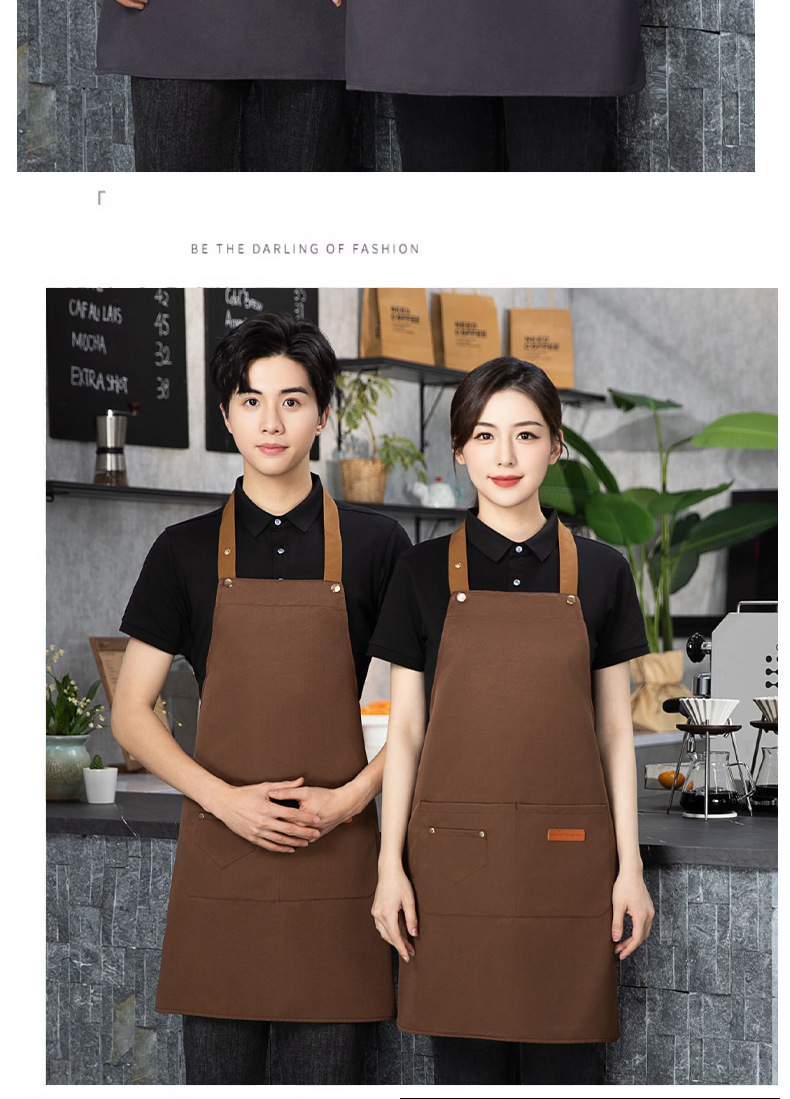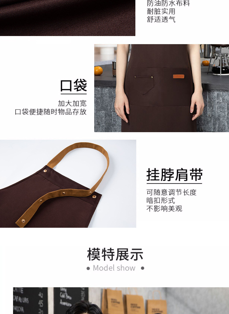 color matching three-button apron deep coffee