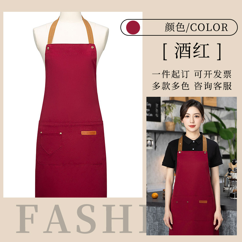 color matching three-button apron wine red