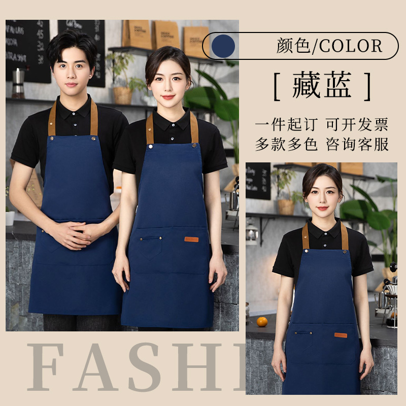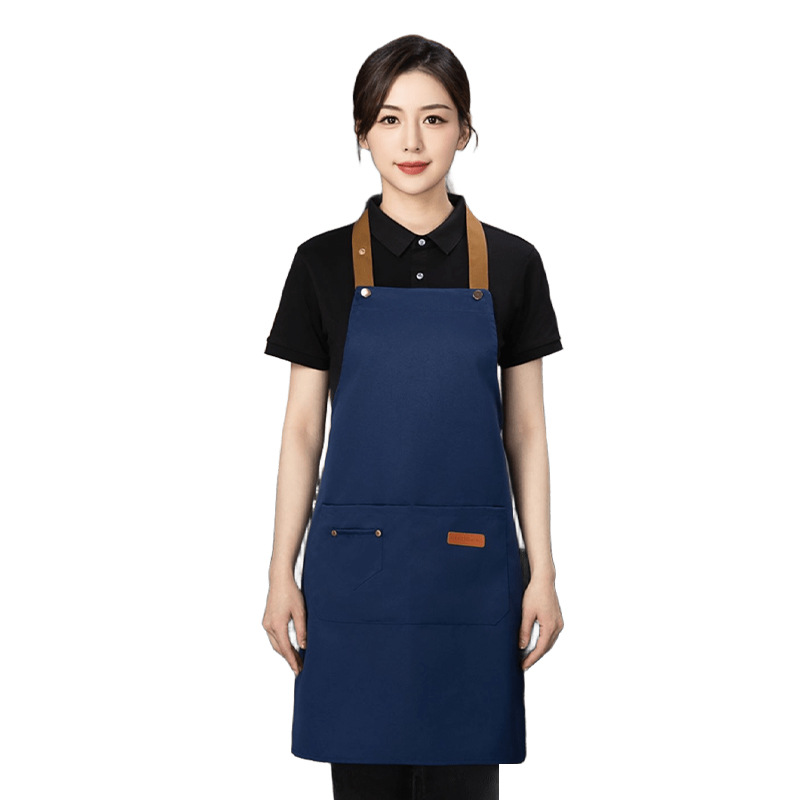 color matching three-button apron dark blue