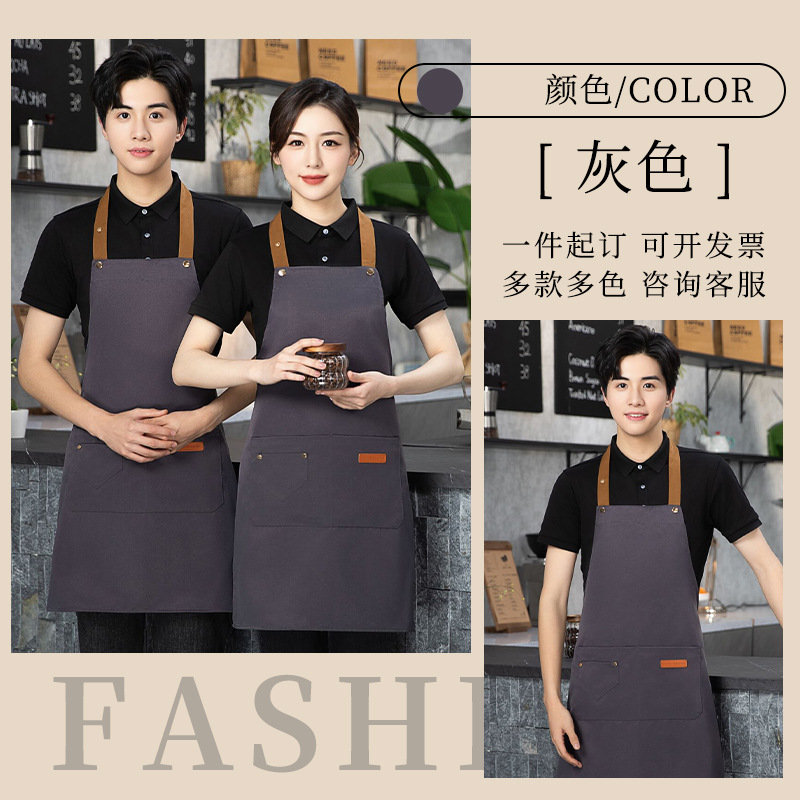 color matching three-button apron gray