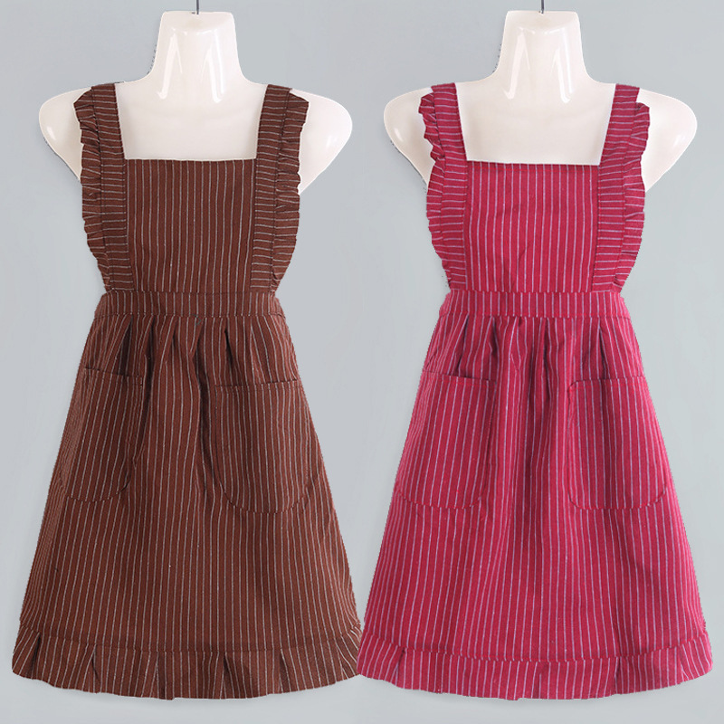 strap cotton striped princess dress-coffee color