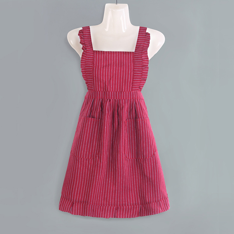 strap cotton striped princess dress-red