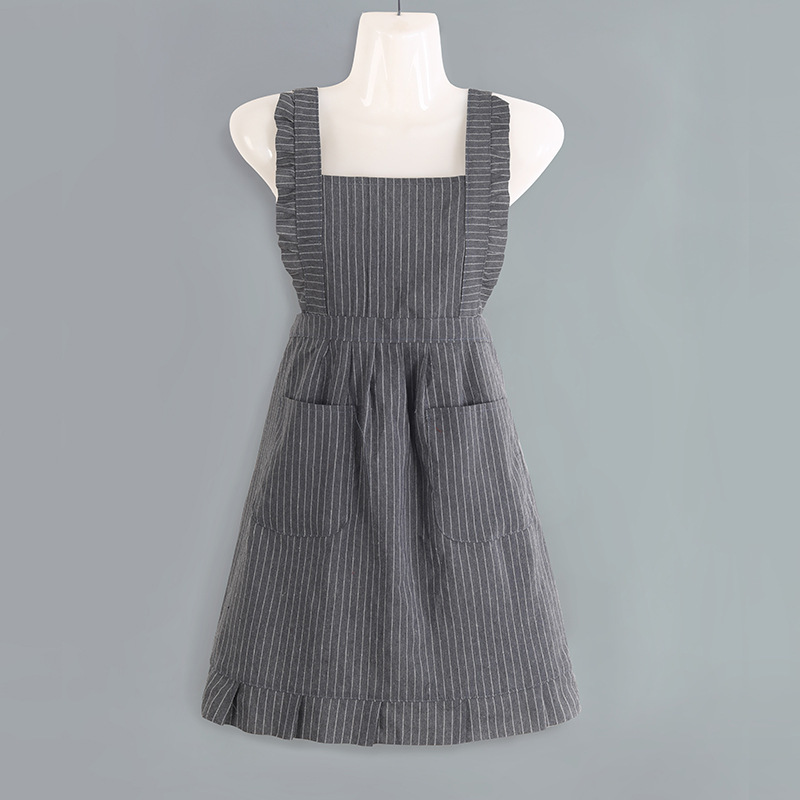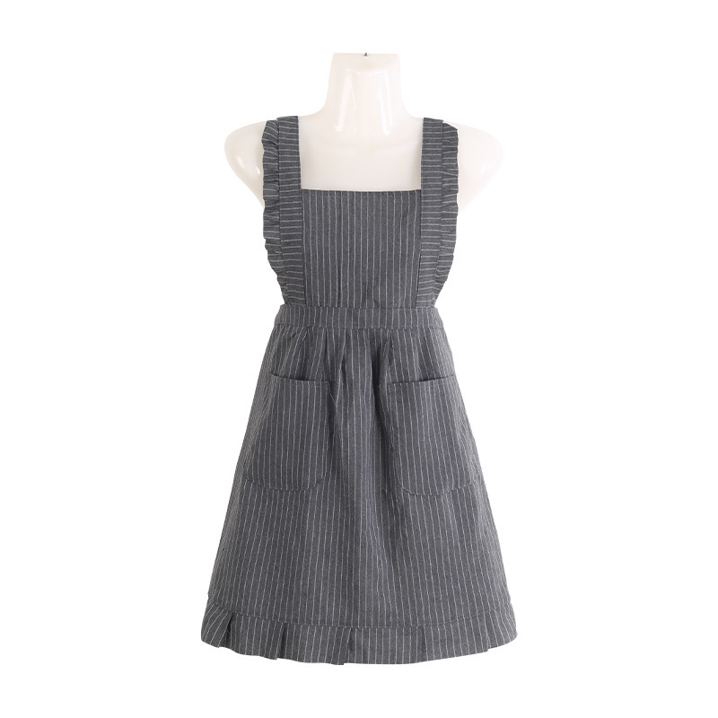 strap cotton striped princess dress-gray