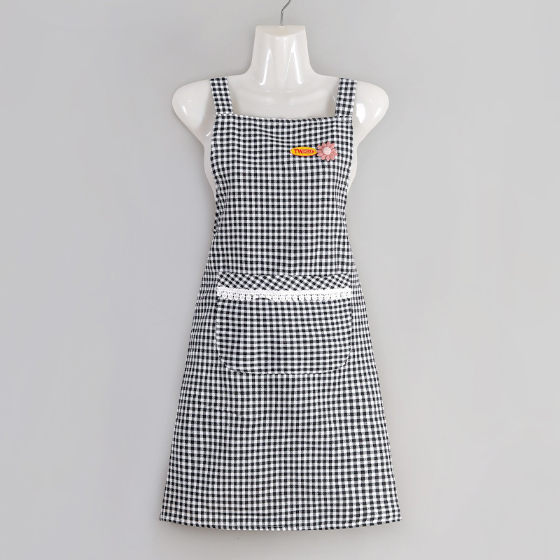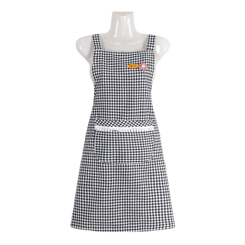 cotton plaid small flower strap-black