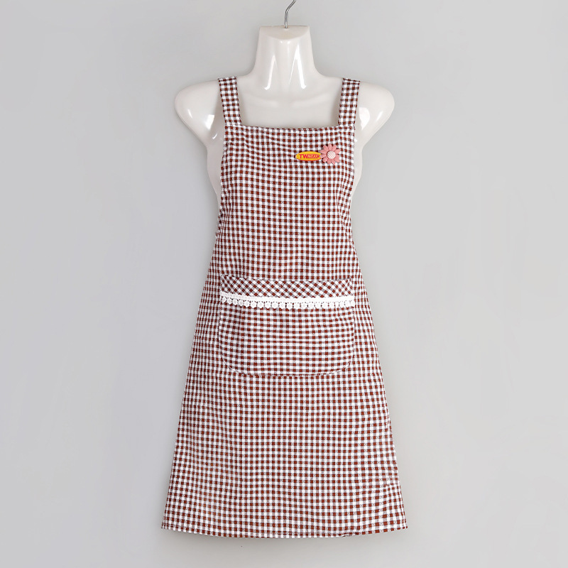 cotton plaid small flower strap-coffee color