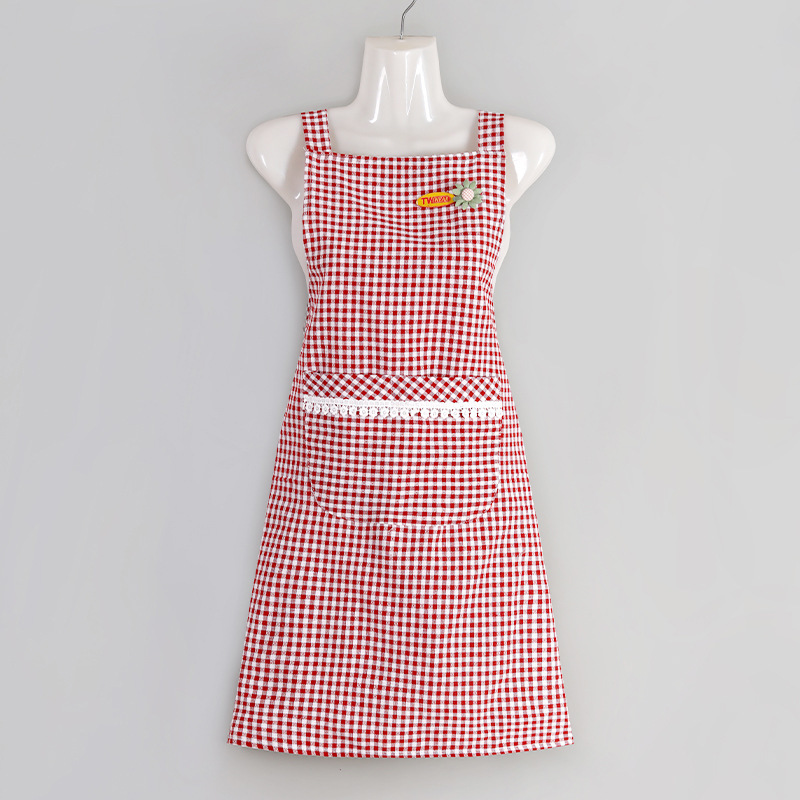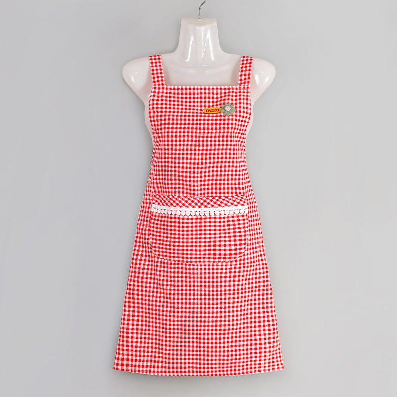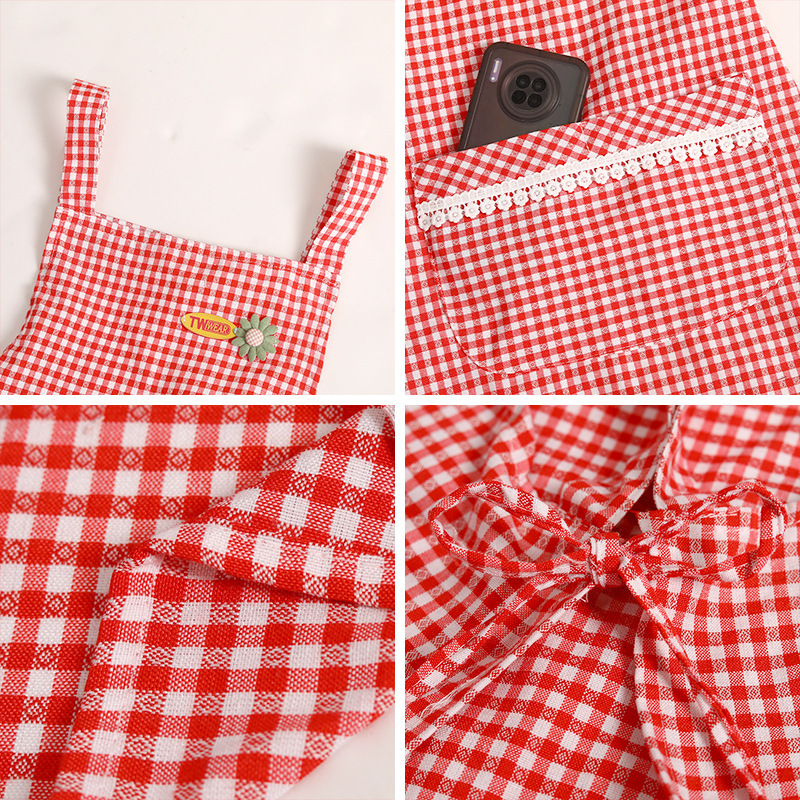 cotton plaid small flower strap-red