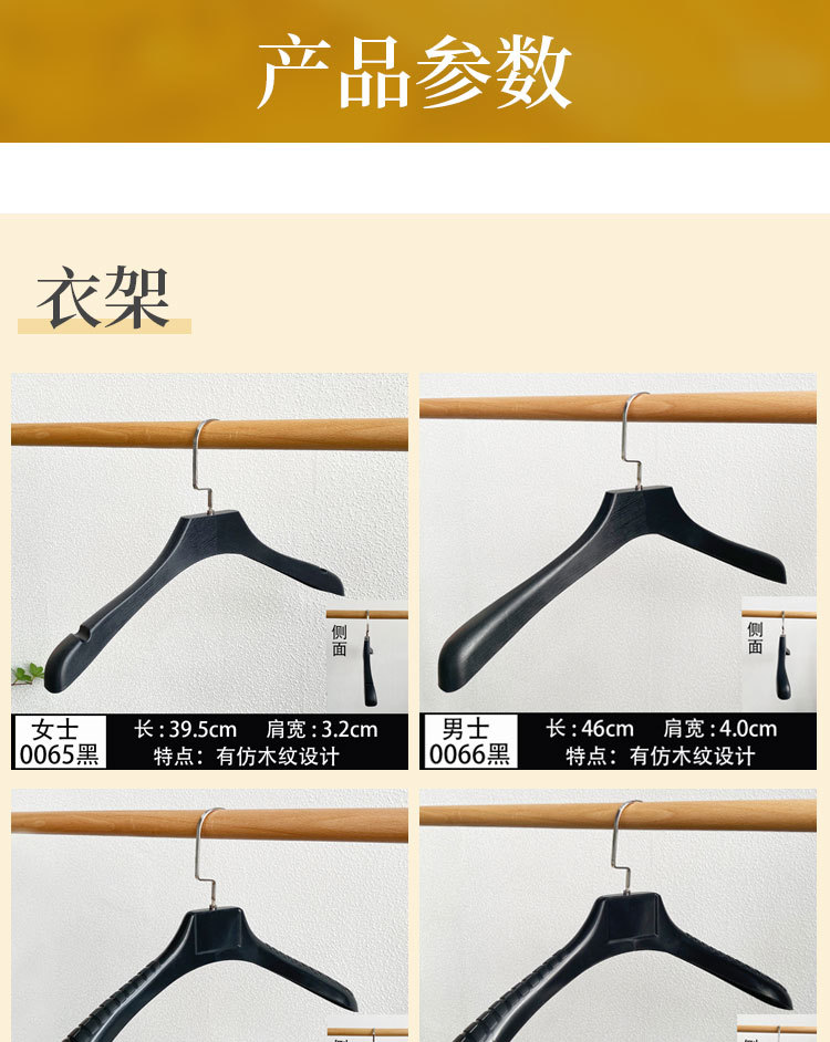 flat hook 0065 black for women wood grain hanger