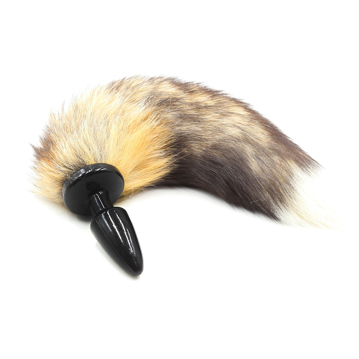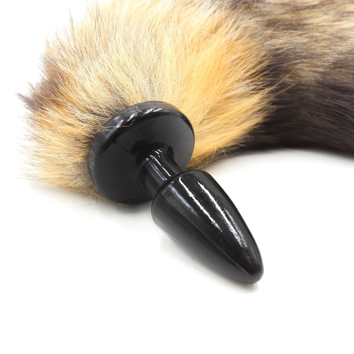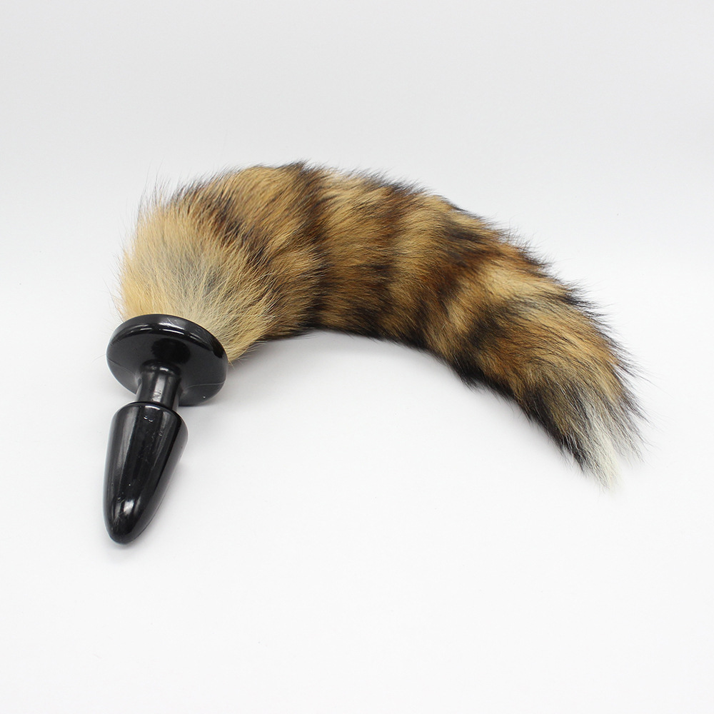 black silicone butt plug-brown real fur