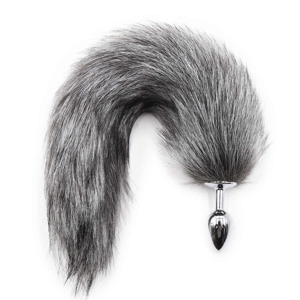 gray white pointed artificial fur small size metal butt plug