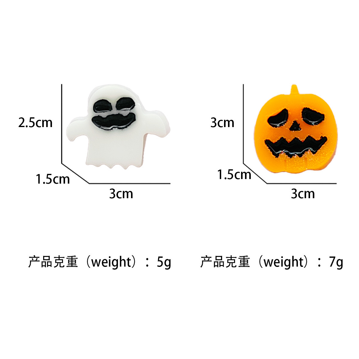 Product Size: Pumpkin 3*1.5*3cm, Ghost 3*1.5*2.5cm