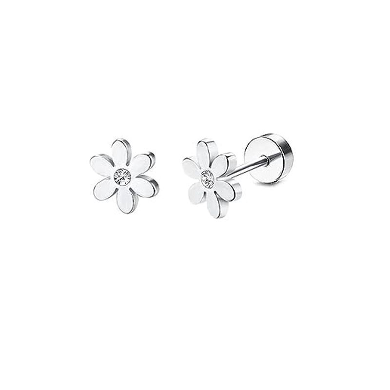 single rhinestone flower white pair