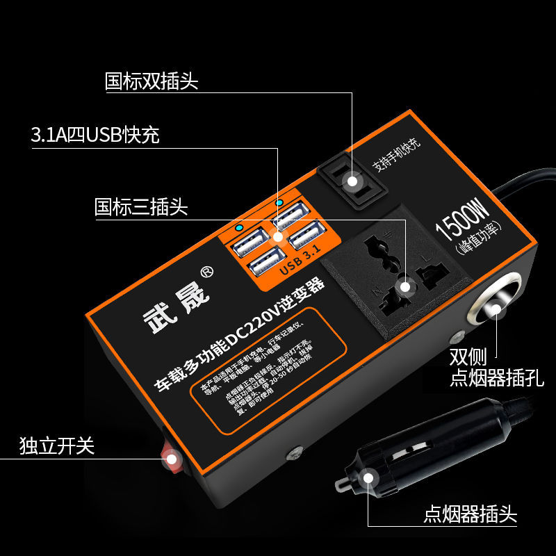 small car inverter 12v24v to 220v universal truck high power socket charging power adapter