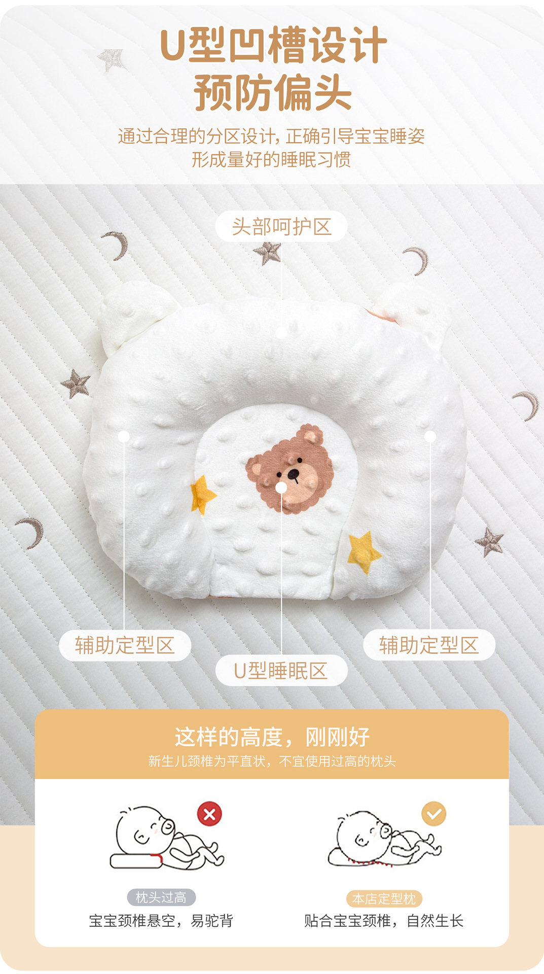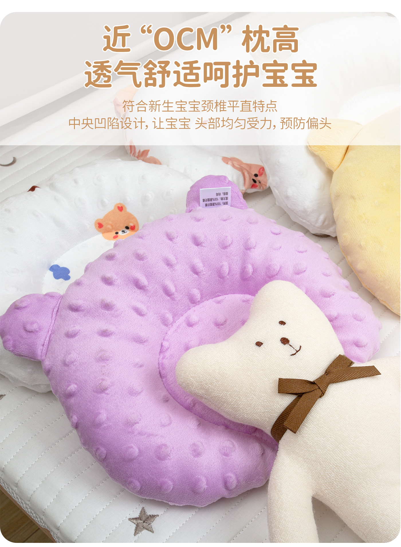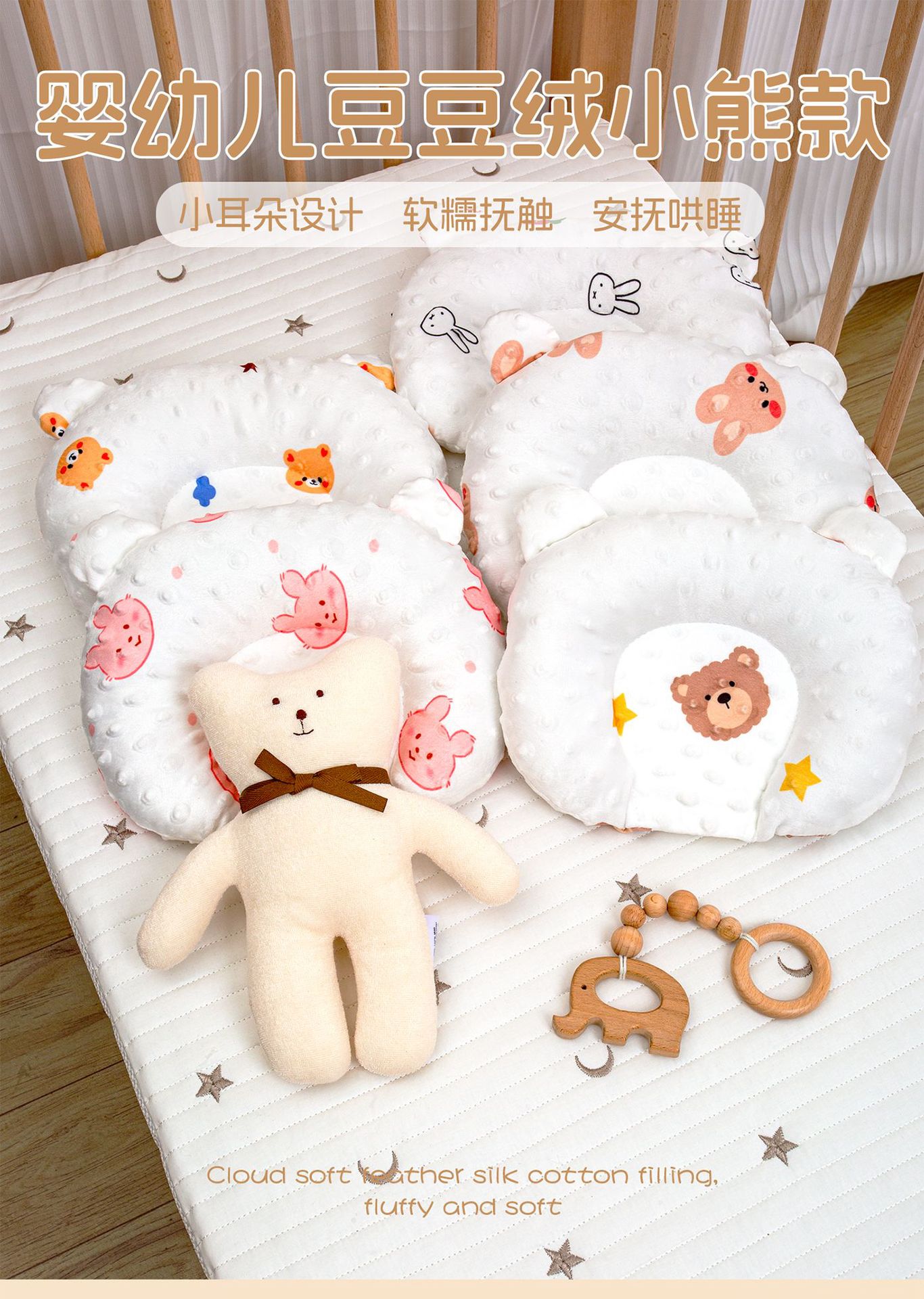 newborn babies' shaping pillow beanie velvet anti-deviation pillow for infants and children four seasons universal pillow 0-3 years old adjustable