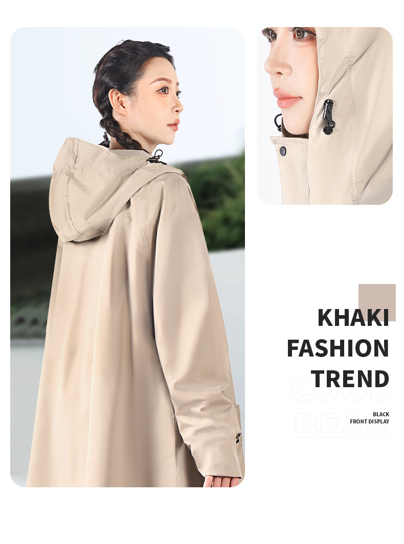 xl-khaki riding model [integrated trench coat design + waterproof large pocket + lengthened zipper + schoolbag position]]