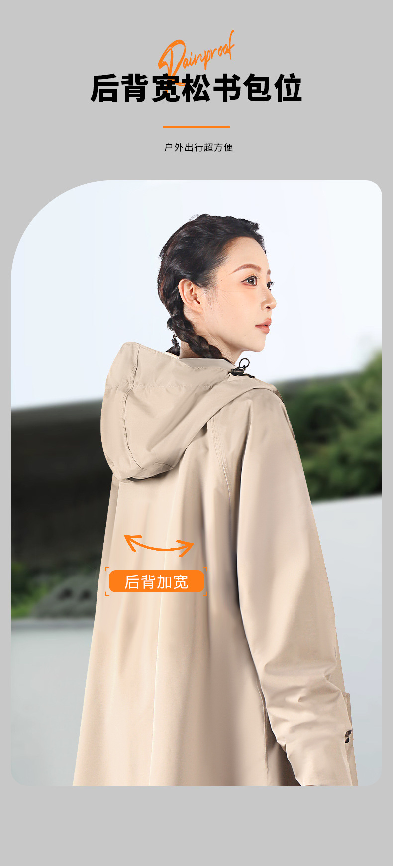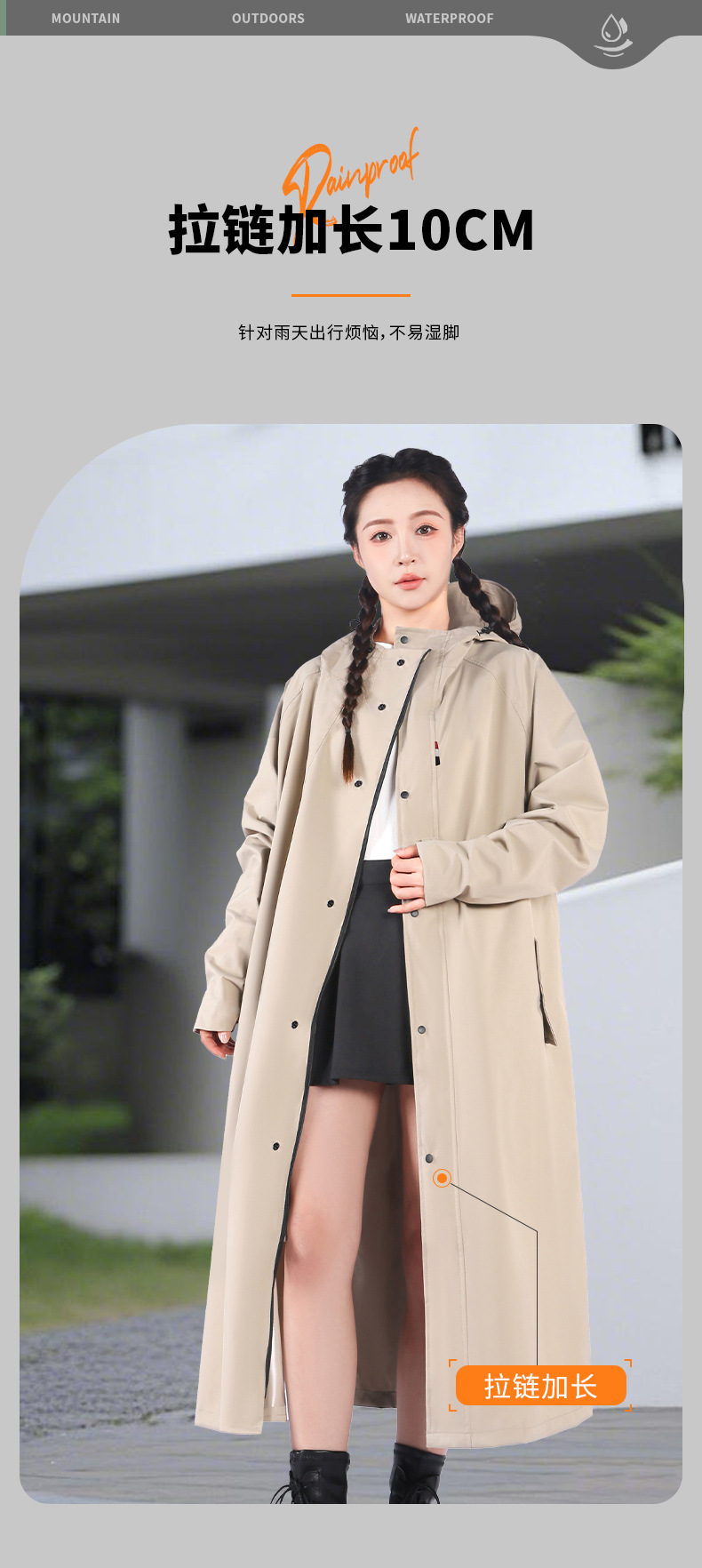 m-vanilla color riding model [integrated trench coat design + waterproof large pocket + lengthened zipper + schoolbag position]]