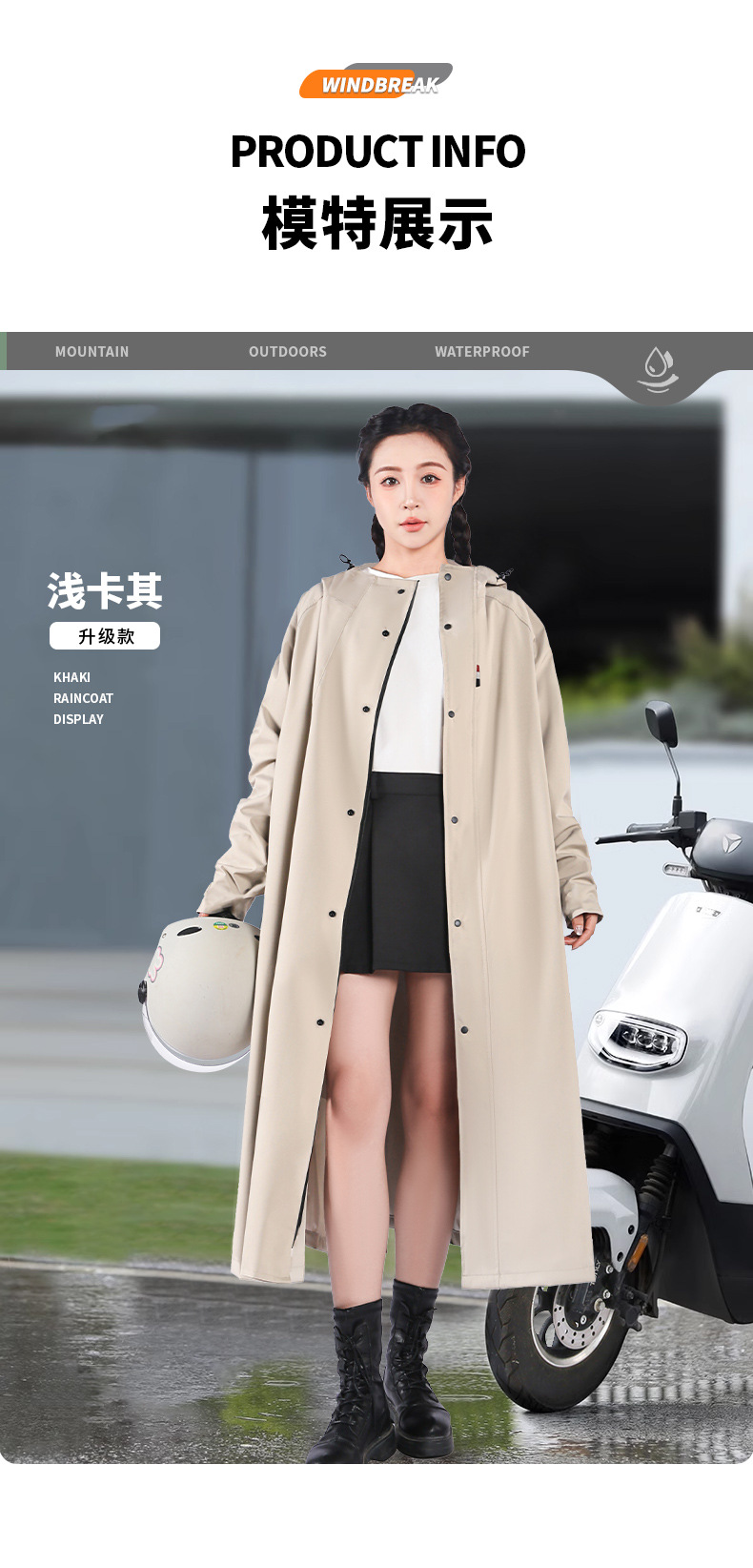 m-khaki riding model [integrated trench coat design + waterproof large pocket + lengthened zipper + schoolbag position]]